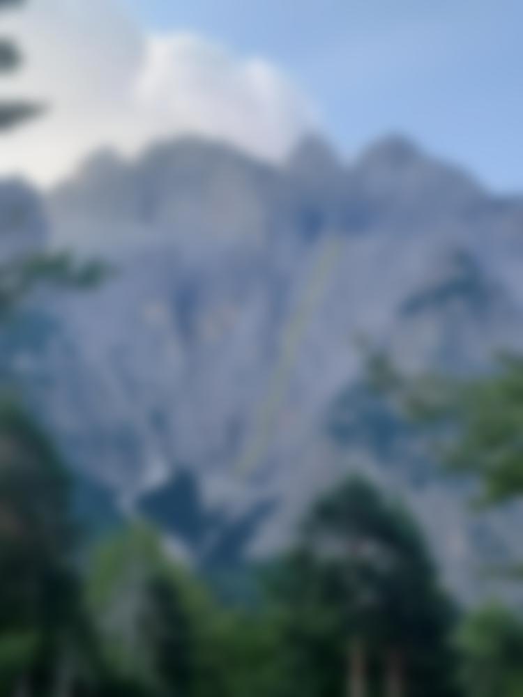 Sieht man den Jof Moz vom Parkplatz, so ist er als kleiner Trabant des riesigen und komplexen Jof Montasio kaum zu erkennen. Auch die Wand wirkt eher klein im Vergleich - wandert man jedoch im so gut wie nie besuchten Val Rotta (es gibt dort kaum Anzeichen menschlicher Aktivität, geschweige denn einen Weg) aufwärts, so gerät die Nordwand des Jof Moz immer mehr ins Bilckfeld. Die "Il piccolo Bruco Maisazio" (übersetzt "Die kleine Raupe Nimmersatt") benutzt dabei im unteren Wandteil einen der schwarzen Wasserstreifen, um nach einer Flachpassage den oberen Wandteil über die einzige Schwachstelle im Überhang zu Beginn zu erklimmen. Die Kletterei erfolgt in sehr griffigem Dolomit meist guter bis sehr guter Felsqualität (auch wenn sich die Route natürlich immer noch in den Julischen Alpen befindet). Die Stände sind gebohrt und die Route ist zum Abseilen eingerichtet (was zwar aufgrund des supergriffigen Dolomits nicht immer lustig, aber immer noch besser als der sehr komplizierte Normalabstieg ist) - ansonsten steckt aber bis auf 2 Normalhaken nichts. Für eine Alpinroute ist die Tour "normal" abzusichern, wobei die zweitschwierigste Stelle 3-4 m ungesichert über einem Band geklettert werden muss, bis ein Cam gelegt werden kann.