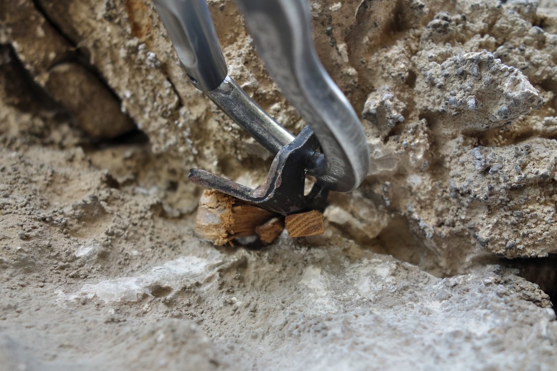 Die Absicherung dieser Tour ist so eine Sache - es wurde von den Erstbegehern teilweise grenzwertiges Material (Normalhaken mit Holzkeilen fixiert, Schlinge im Riss mit Steinen "befestigt") eingesetzt.