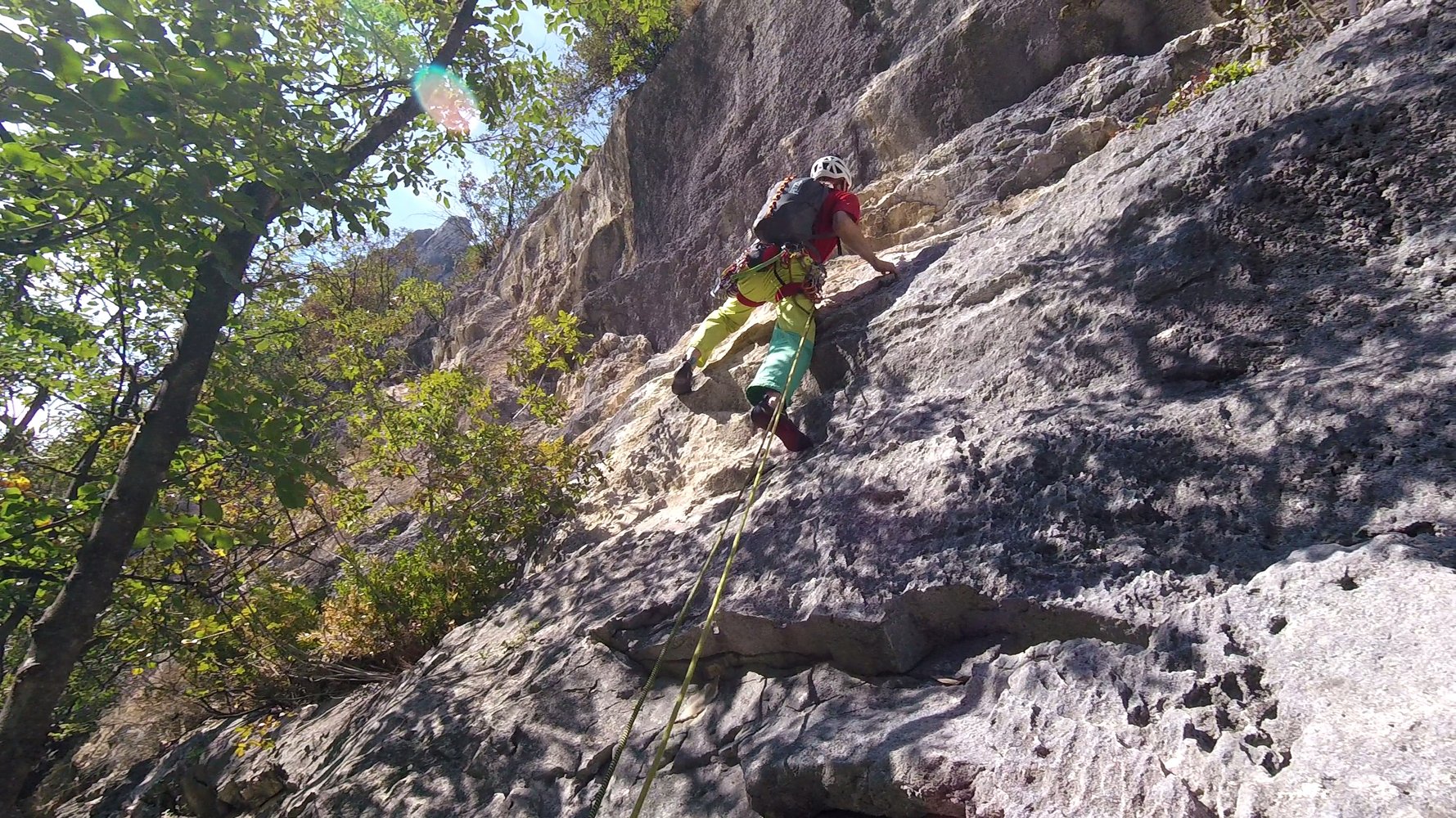 Eigentlich recht ansprechende Tour, welche - wäre die Absicherung etwas besser - zum Klassiker werden könnte. Die Route verläuft primär über schöne Platten, aber auch an schönen, steilen Wandpassagen rechts vom Colodri aufwärts. Bei der Absicherung wurden z.B. mit Holzkeilen stabilisierte Normalhaken (erste Seillänge) oder eine nur mit Steinen befestigte Schlingen verwendet. Bei dieser Route ist ein Vorsteiger mit alpiner Erfahrung gefragt, der auch das ein oder andere mobile Sicherungsmittel anbringen kann.