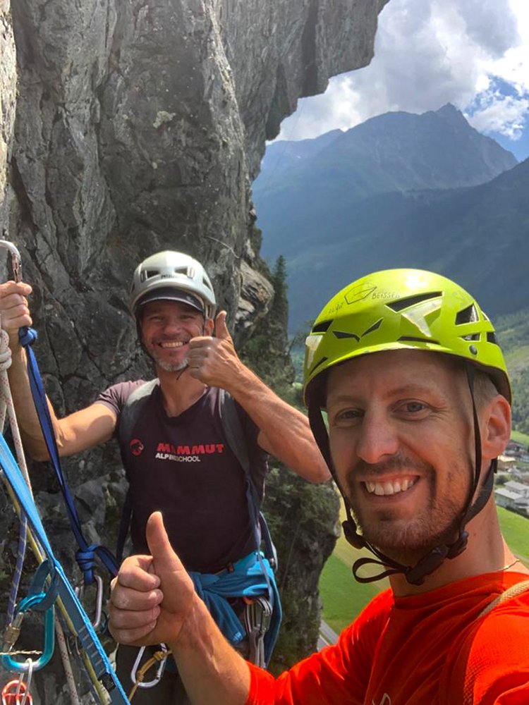 Die Route ist sehr gut abgesichert, teilweise fixe Expressschlingen.