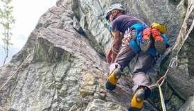Die erste Seillänge hat mäßigen Fels, der Rest der Route ist aber sehr gut.