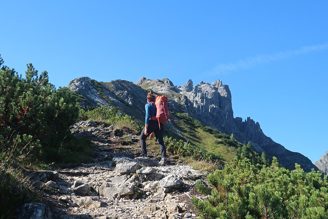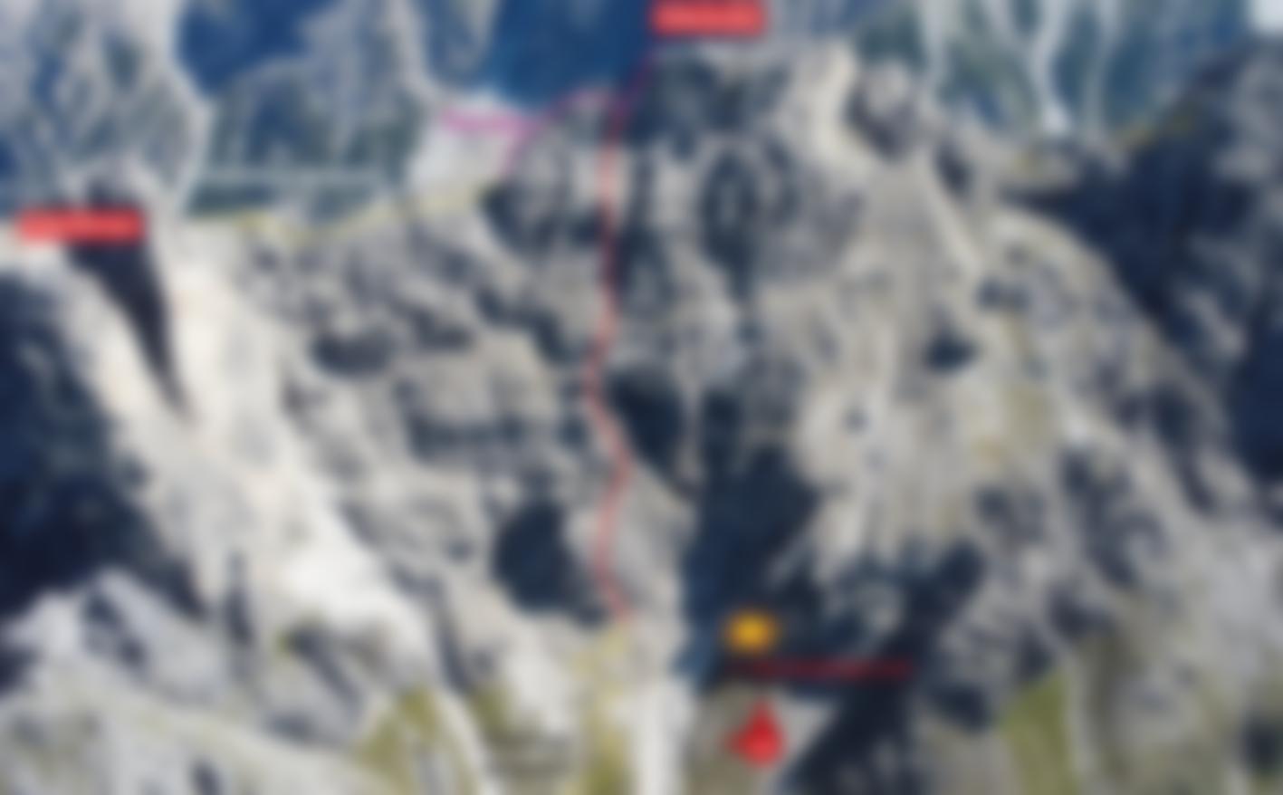 Vom Ende der Route links auf dem Klettersteig ein paar Minuten absteigen, dann zu Fuß zurück zur Elferhütte und von dort hinunter zur Kabinenbahn.