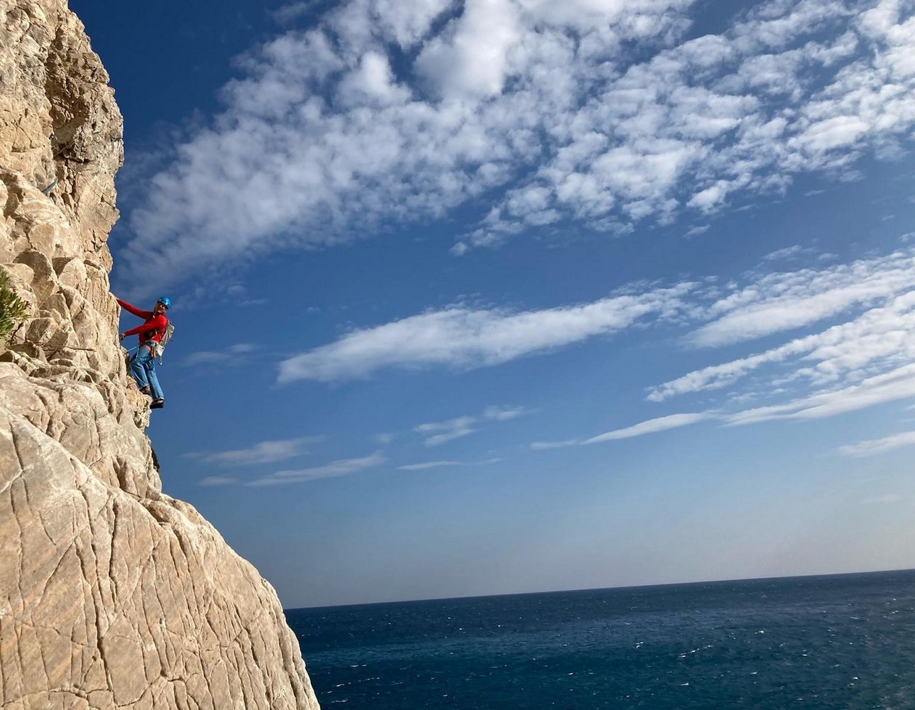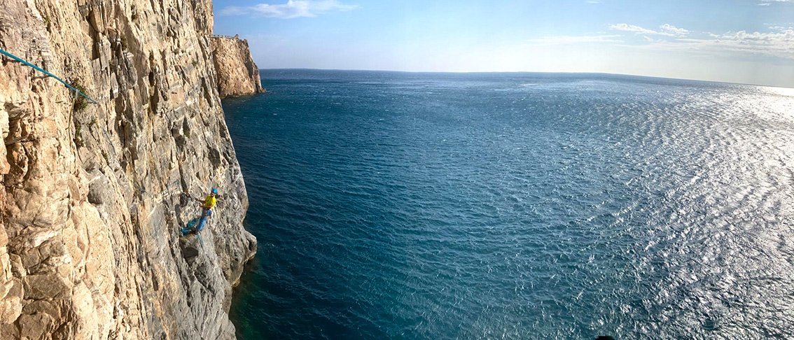 Die lange und großartige Traverse verläuft auf 400 m immer wenige Meter über dem Meer und bietet so ein einzigartiges Klettererlebnis. Die Schwierigkeiten beschränken sich auf die ersten Seillängen, dann wird es leichter, wobei im leichteren Gelände die Wegfindung schwieriger wird. Die Route ist gut bis sehr gut gesichert, man sollte sich aber bewusst sein, dass die Bolts so nahe über dem Meer stark rosten. An den Ständen stecken daher bis zu vier Stück und selten auch ein Klebehaken.