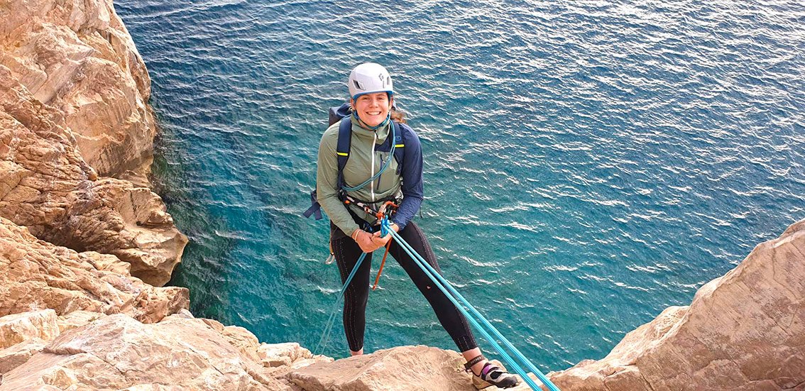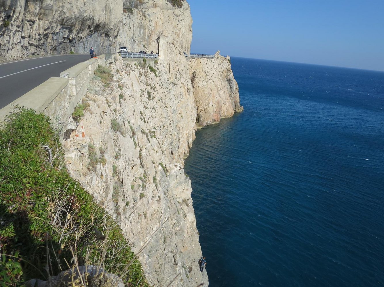 Vom Parplatz der Straße zurück Richtung Finale zum Abseilpunkt bei einem Felsvorsprung mit ebenen Platz und kleiner Steinmauer - siehe Karte. Am Ende der Mauer sind drei Bohrhaken zum Abseilen vorhanden.