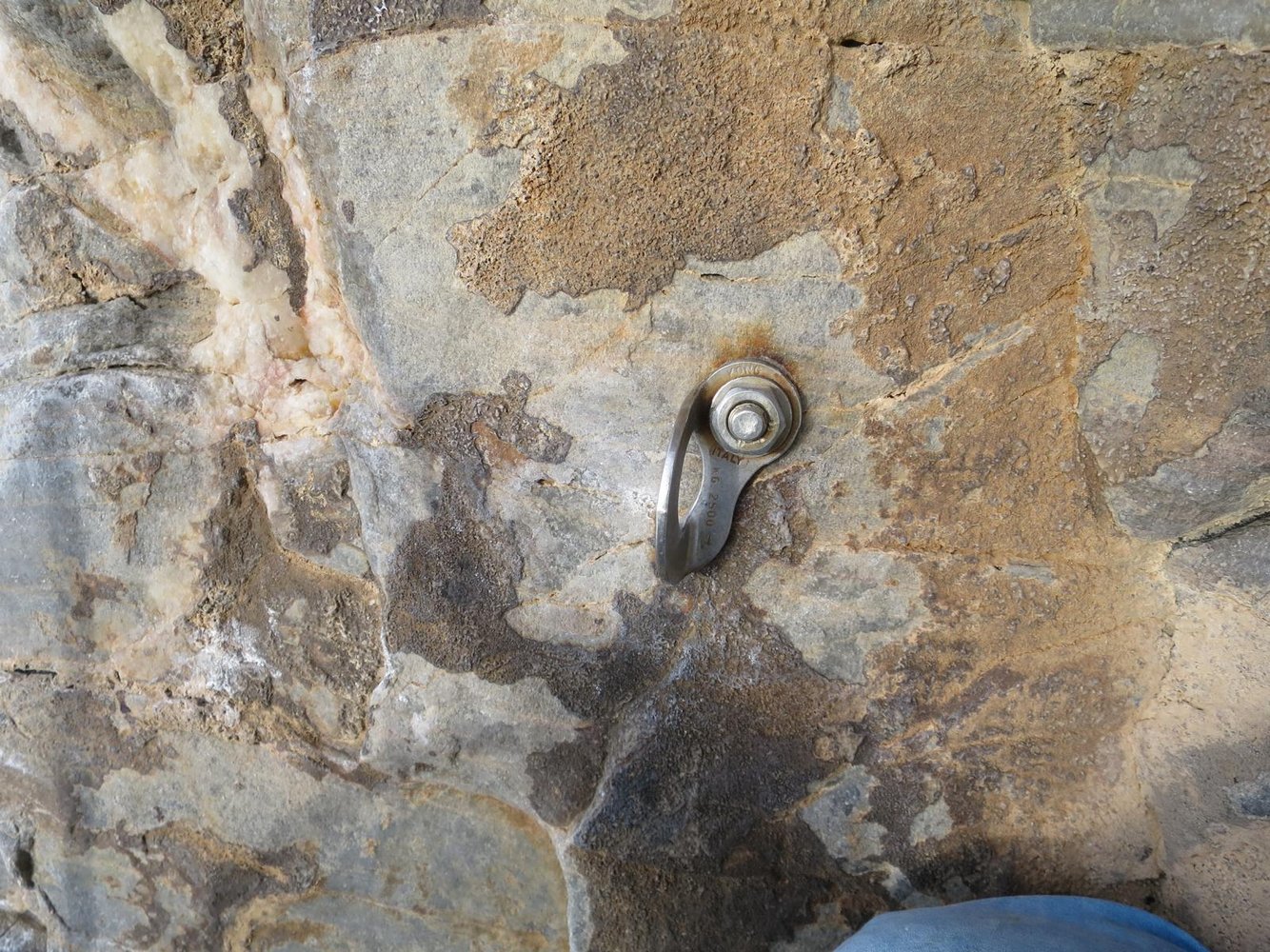 Sehr gut mit Bohrhaken, einigen Sanduhren. Die Qualiät der Bohrhaken ist allerdings im Auge zu behalten! Am 27.10.2021 war sie gut, mit einigen sichtbaren Rostspuren. Die Route wurde allerdings regelm. saniert und es kamen Klebehaken dazu.