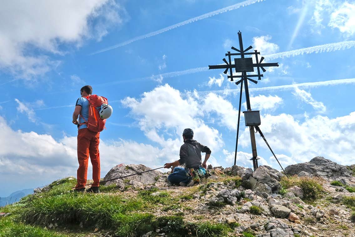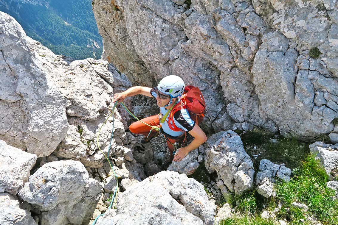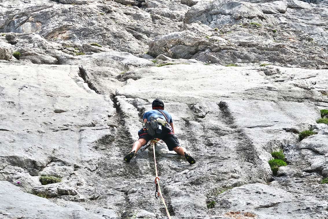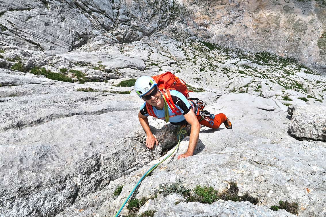 Zustieg und Abstieg verlangen ein wenig alpines Gespür! Die Tour ist also nichts für 100%ige Hallenkletterer, die noch nie alpin Sportklettern waren.
