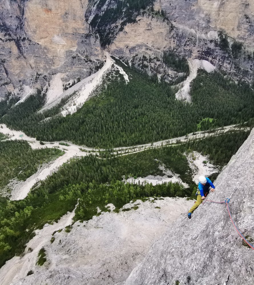 Voller Neugierde stiegen Manuel und Jakob Ende Juli zum Wandfuß auf. Den Zustieg und den möglichen Startpunkt der neuen Route hatte Manuel bereits einige Tage vorher erkundet. Die Beschaffenheit des Gesteins und die Charakteristik der Kletterei übertrafen allerdings sogar ihre Erwartungen. Flüssig und genussvoll ließen sich die ersten 8 Seillängen bereits am ersten Tag einrichten. Toller griffiger Fels gestalteten das Klettern unterhaltsam und kurzweilig. Mehrfach wunderten sie sich über die Tatsache, dass diese Wand noch jungfräulich war. Am zweiten Tag konnten sie schlussendlich die gesamte Route fertigstellen und dieselbe mit Stand- und Sanduhrschlingen einrichten. Die "Ironie" weist sehr festen und strukturierten Felsen auf. Die Kletterei gestaltet sich konstant und genussvoll. Insbesondere die 5. und 7. Seillänge versprechen außergewöhnliche und sehr lässige Kletterei in ausgezeichnetem Dolomitgestein. In summa summarum eine Route, die das Zeug zu einem Klassiker haben könnte. Insgesamt eine sehr lohnenswerte Route mit erstaunlich guten Fels, den man im Rautal in dieser Weise nicht erwarten würde.