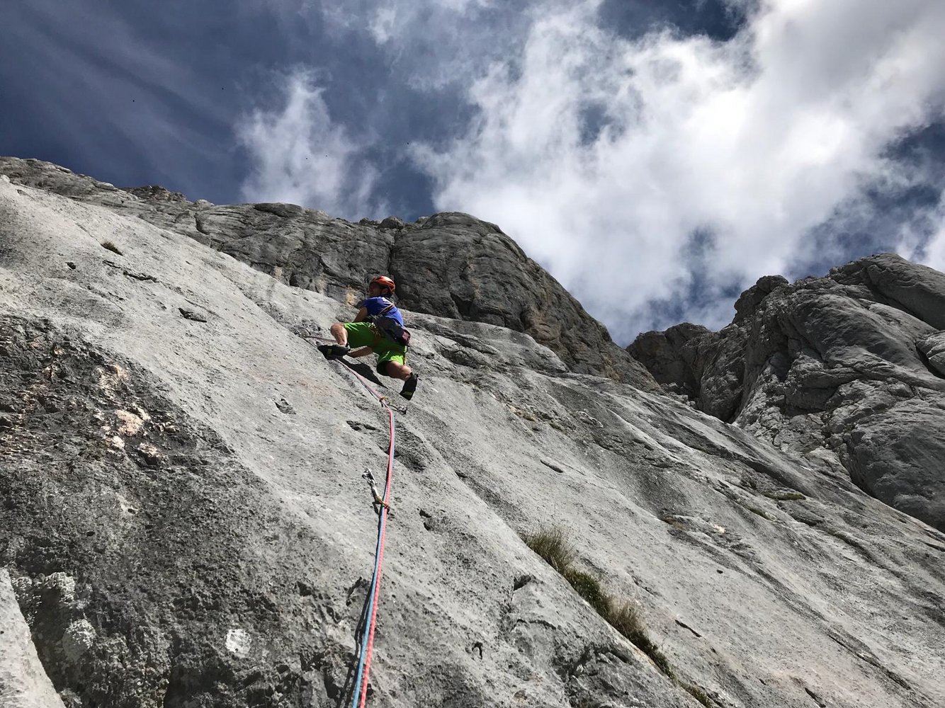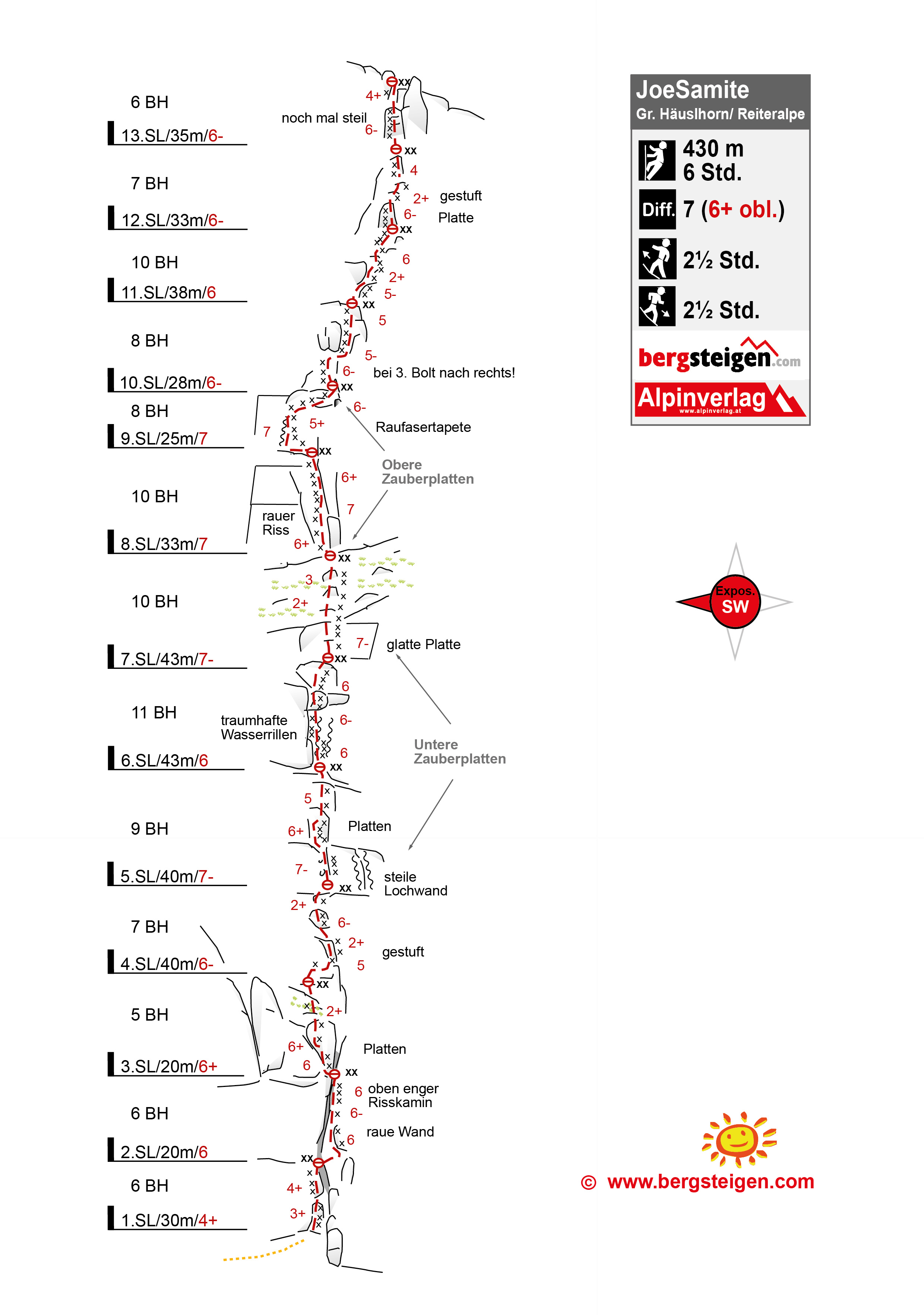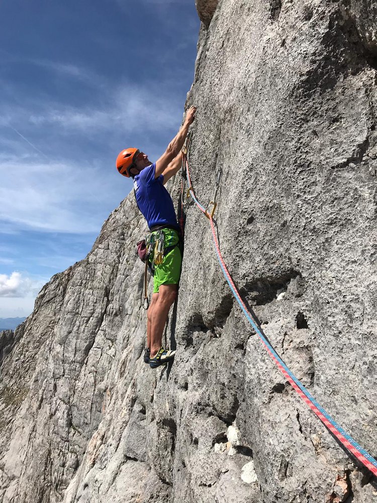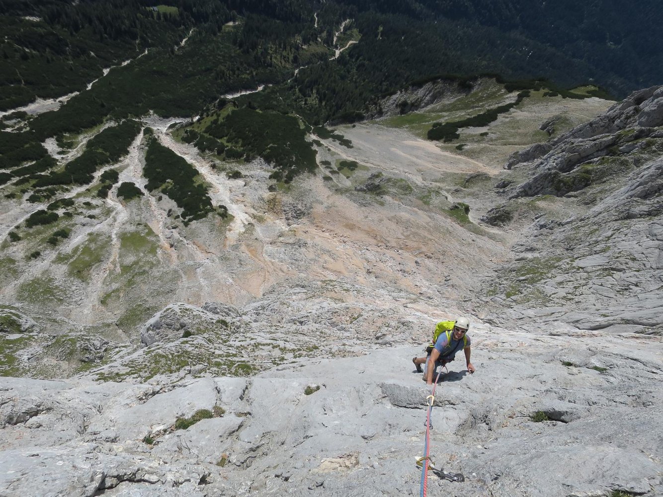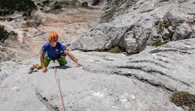 Zustieg und Abstieg verlangen alpines Gespür! Die Tour ist also nichts für 100%ige Hallenkletterer, die noch nie alpin Sportklettern waren.