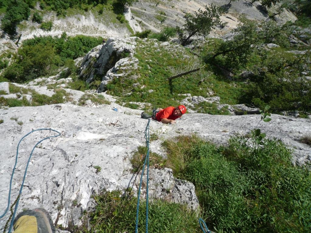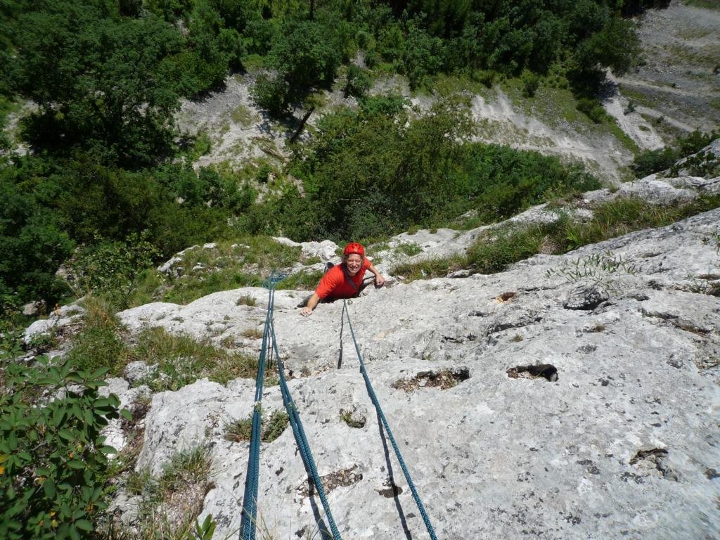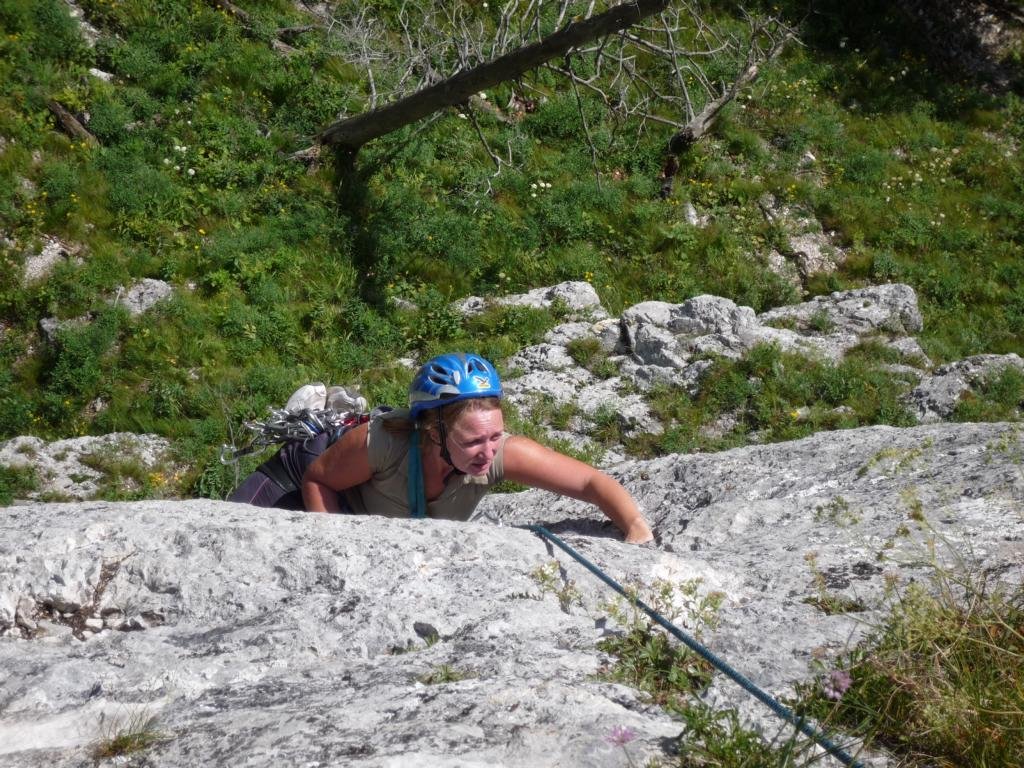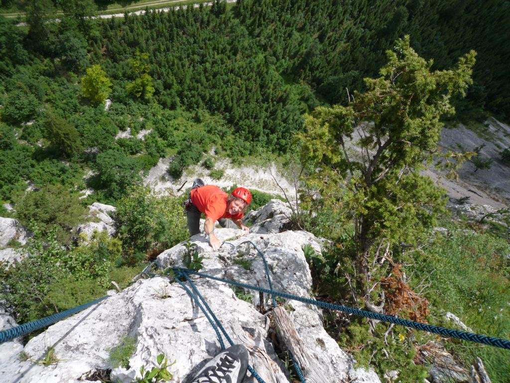 Neue, nette und sehr gut abgesicherte Plaisirtour von den Altmeistern Peter Königsberger und Alfred Riedl, die Peter zu seinem 70er geklettert ist. Die Linie ist etwas gesucht, bietet aber gemütliche Kletterei in durchwegs festen Fels.
