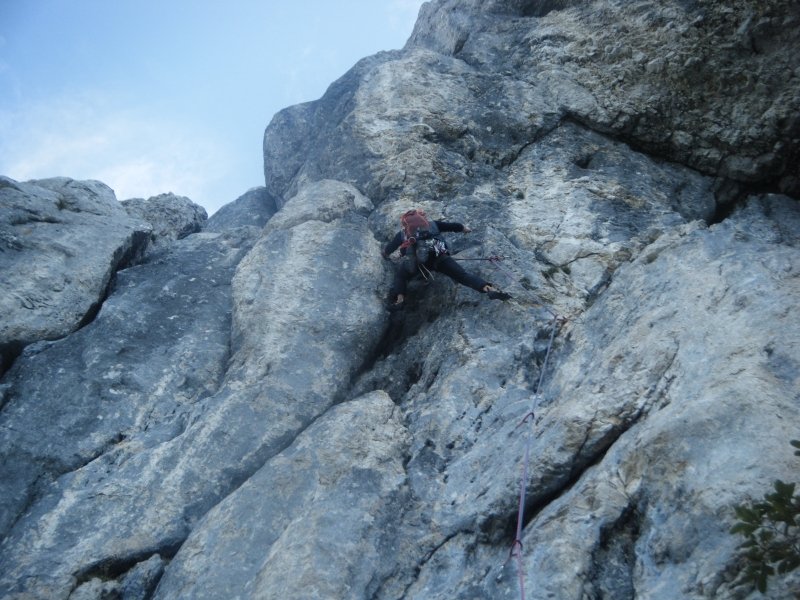 Eine gewaltige Tour durch die Westwand vom Taunstein. 900 Meter Wandhöhe und 1100 Klettermeter machen die Tour zu einer echten Kondischlacht. Der Zustieg geht über eine Schlucht und der Beginn ist mit ein paar 5er Längen recht moderat. Aber dann geht es zur Sache. 9 Sechser, und 5 Siebener Längen fordern schon. Vor allem sind die Längen nicht unterbewertet und teilweise konstante Schwierigkeiten. Also keine Einzelzug Geschichte. Eine freie Begehung ist mit 7+ eher unterbewertet da auch ein paar Griffe und Tritte echt ausgecheckt werden müssten um das Ding komplett frei zu gehen. Die Wegfindung ist in Summe einfach und die Tour ist sehr gut eingebohrt. Landschaftlich herrlich. Nach den 30ig Seillängen kann man Kaffee und Kuchen im Naturfreunde echt empfehlen.