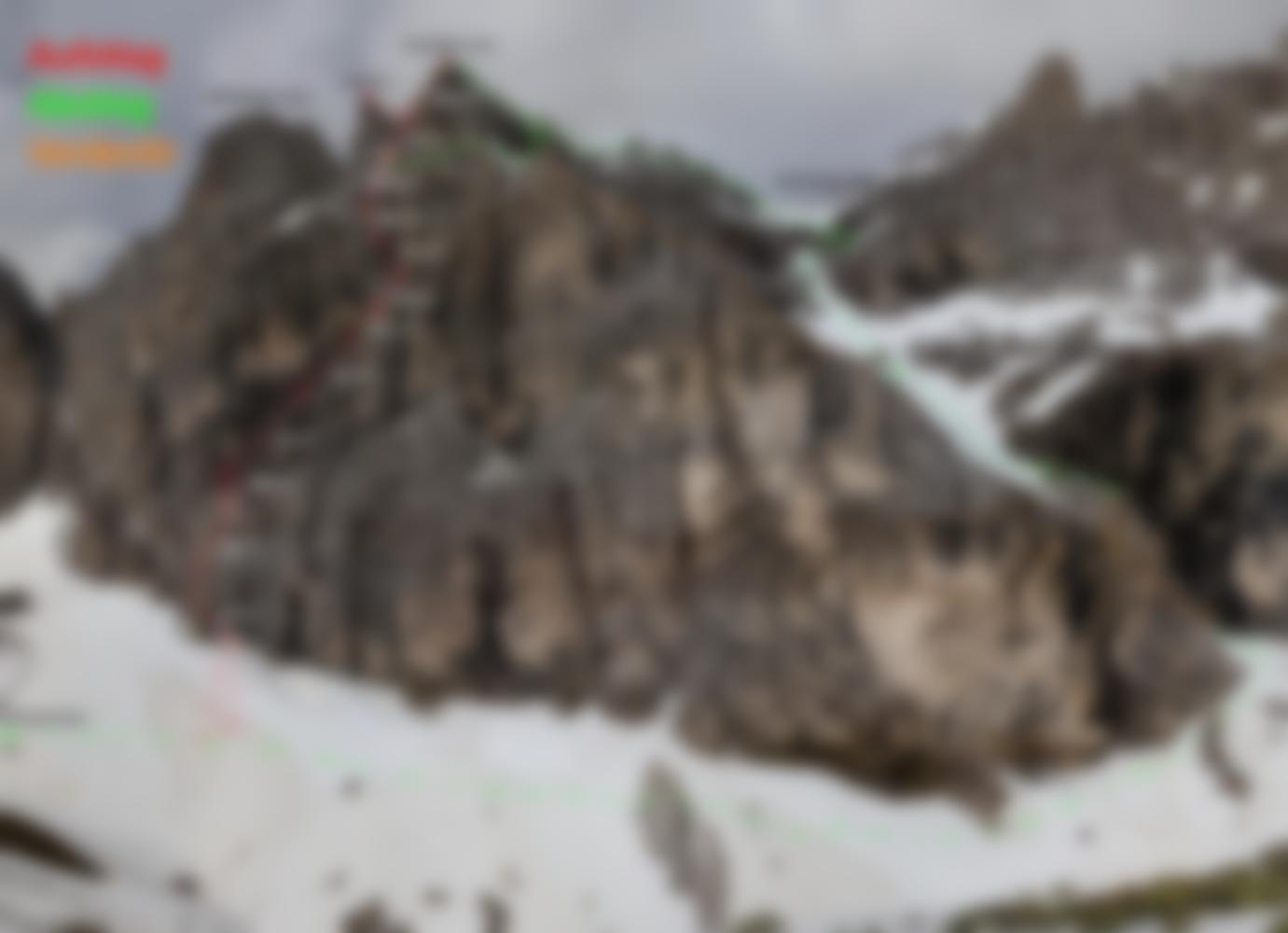 In der 6. SL (30m/IV) nicht wie auf der Originalroute die Rissverscheindung hinauf (Ausbruch und ca. 6+), sondern diese wie im Topo links durch die Platten umgehen!
