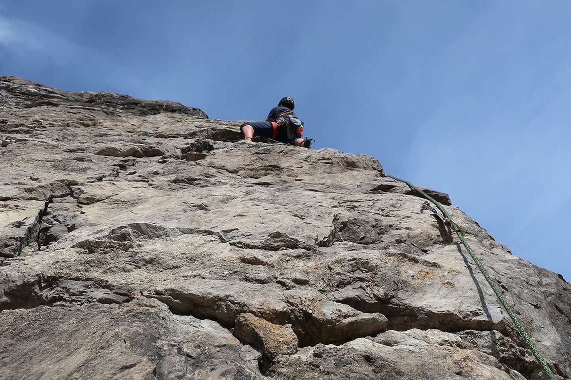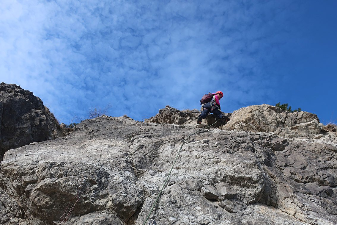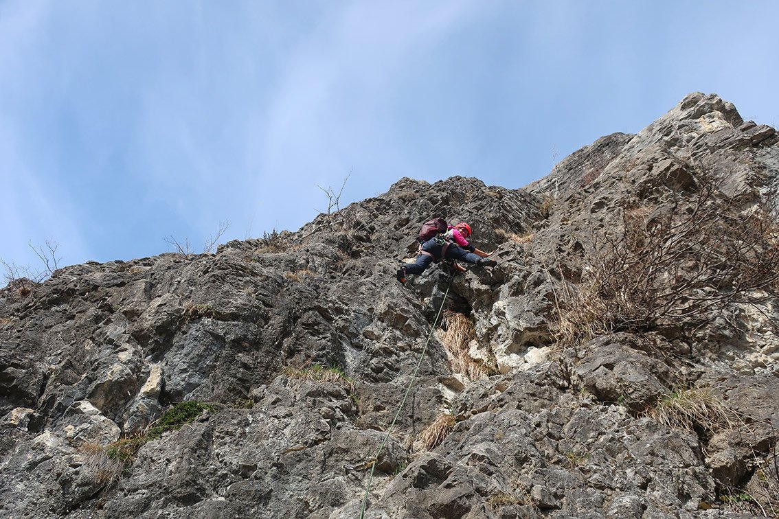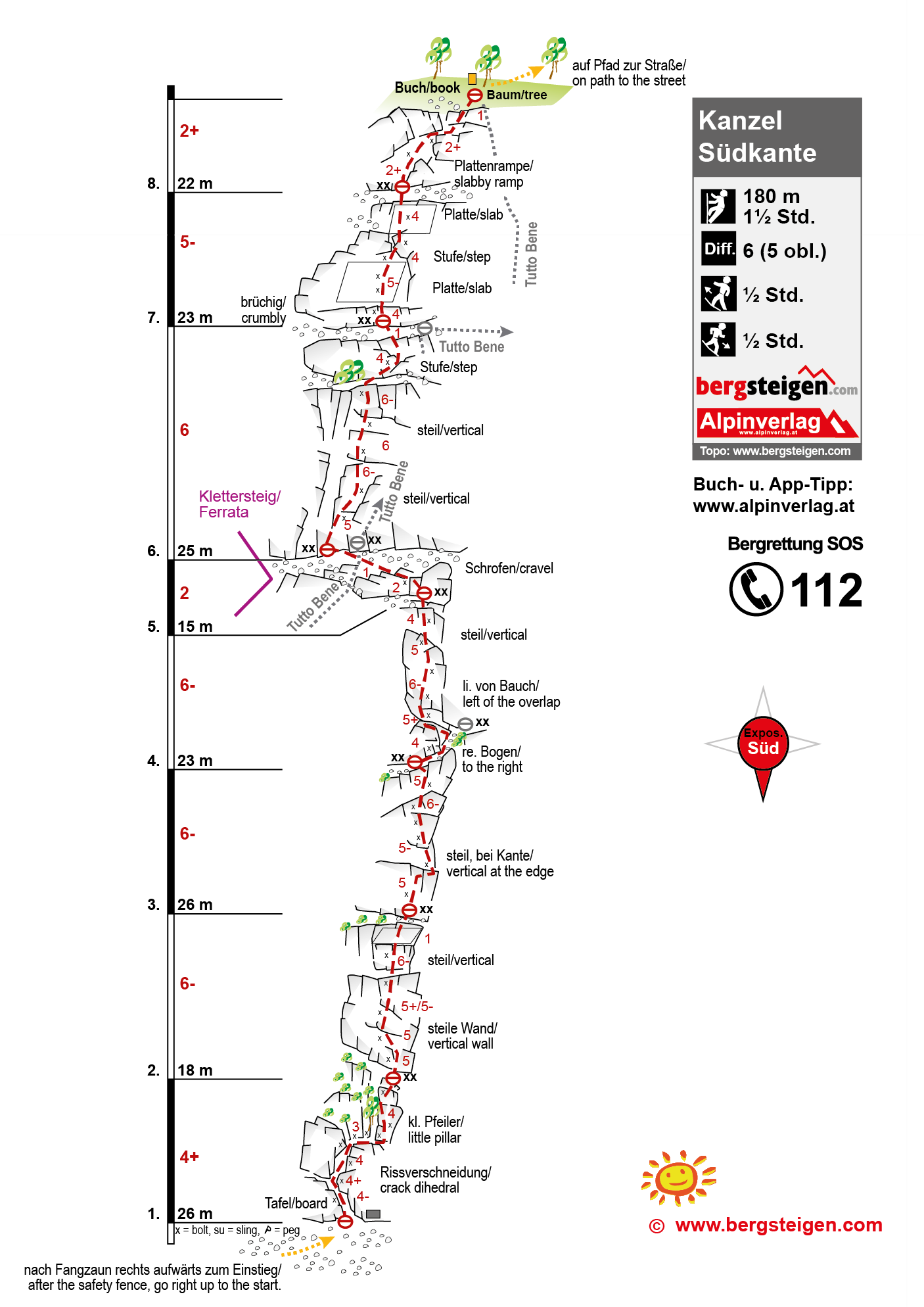 Siehe Topo - ab der zweiten Seillänge wird die Tour steiler.