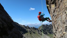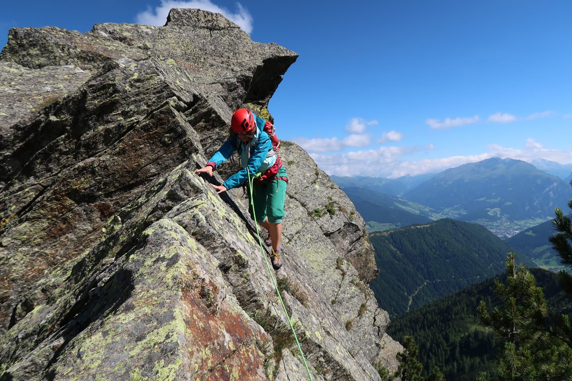 Alpine Klettertour - der Umgang mit mobilen Sicherungsmittel und etwas Gespür für die richtige Route sind gefragt. Der Vorsteiger sollte den 3ten Grad recht solide klettern und etwas alpine Erfahrung haben! Um schneller zu sein könnte man im mittleren und oberen Teil seilfrei oder am kurzen Seil klettern, das hängt aber von der Verfassung und dem Können der Begeher ab. Bei Nässe ist das Urgestein sehr rutschig und der Abstiegsweg gefährlich! Im Frühsommer oft länger Schnee - am besten man kommt im Hochsommer oder September.