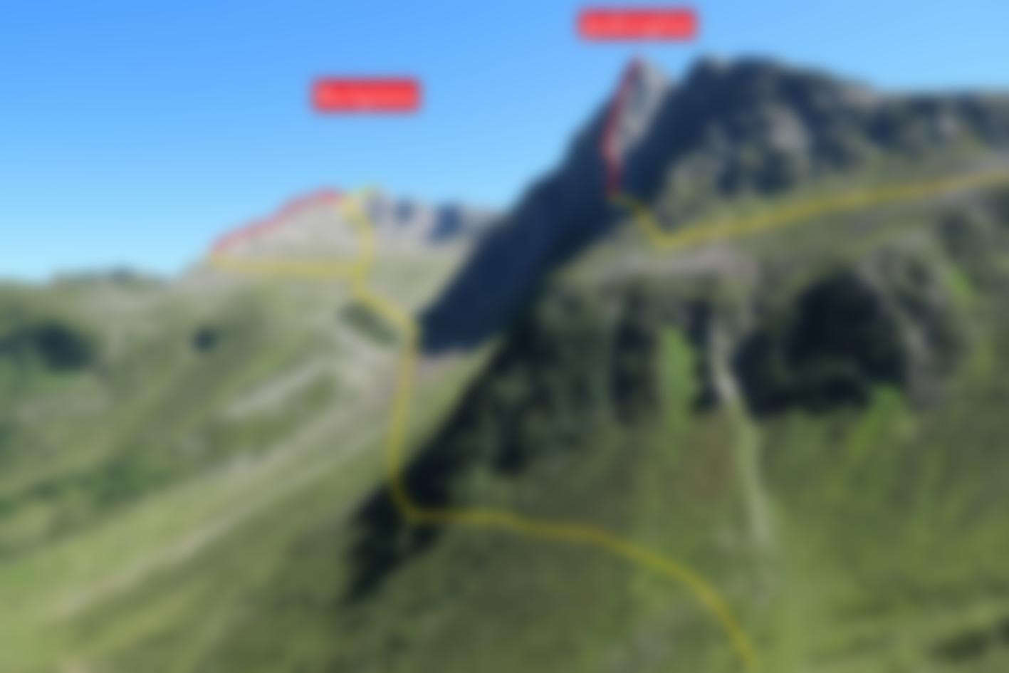 Siehe Topo. Die Route verläuft fast immer im Bereich des Grates und ist einfach zu finden (Weg des geringsten Widerstandes).