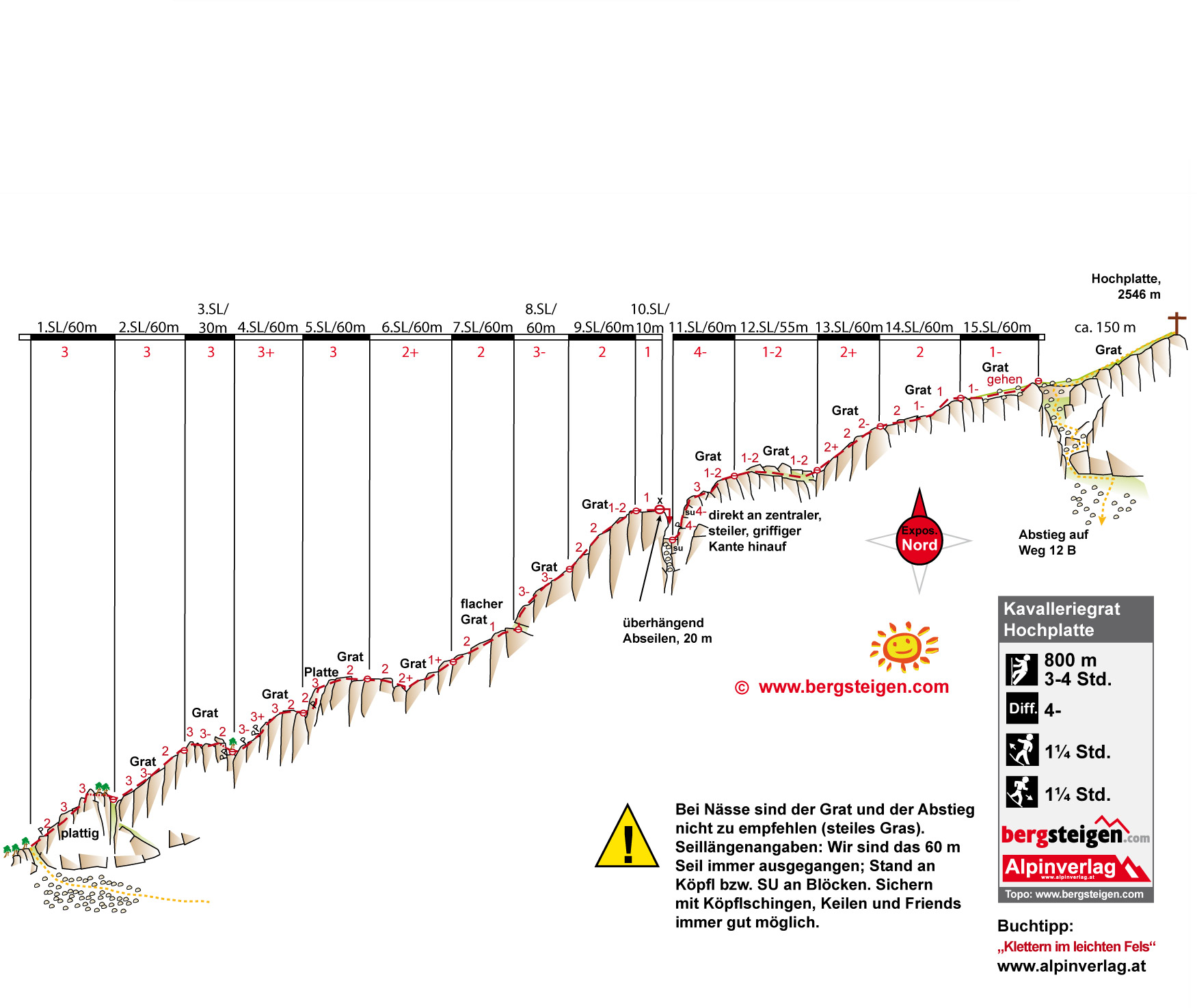 Eine Passage 4-, unten oft 3 im oberen Gratteil leichter.