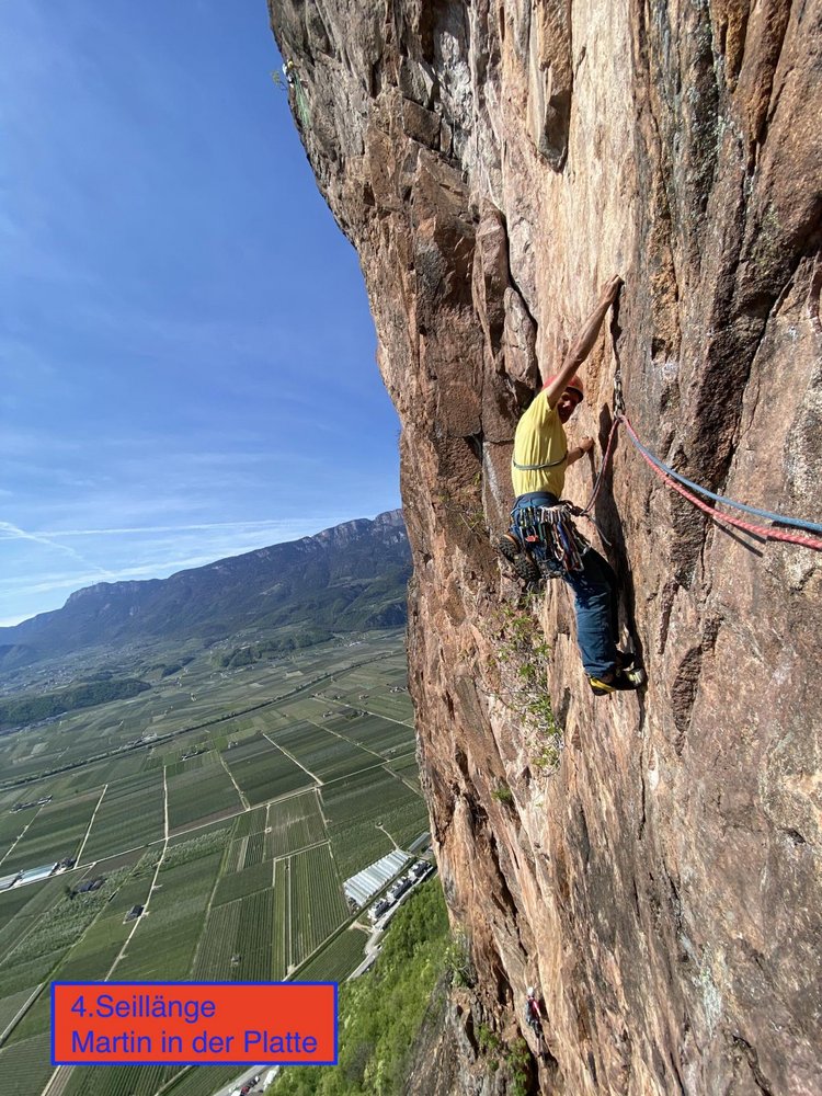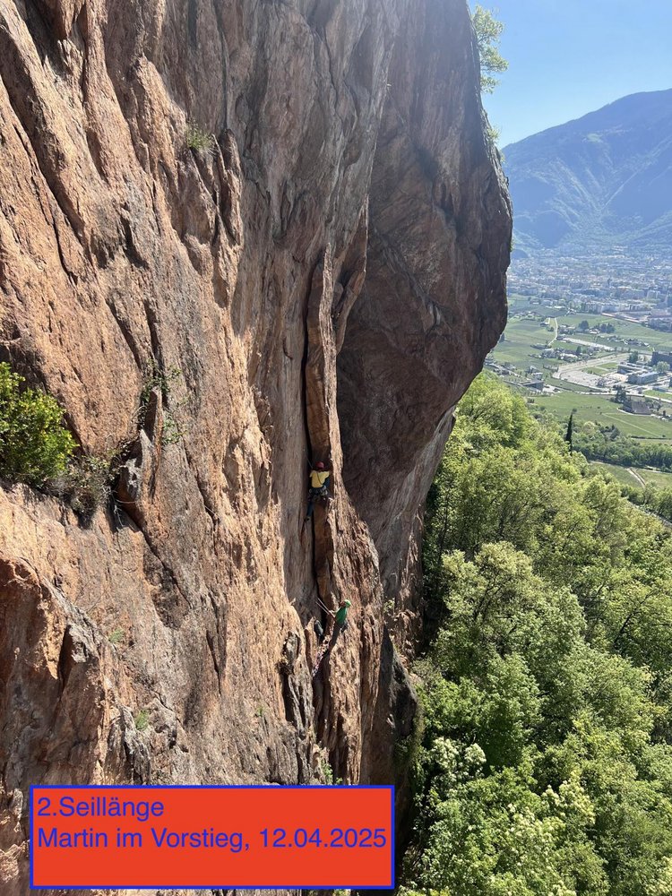 Schöne und sehr abwechslungsreiche Kletterei im orange/braun gebrannten Phorpyhrgestein. In den Seillängen ist alles zu haben, vom Piazriss, Platte, Überhang und Risse.