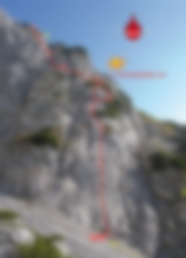Siehe Topo. Unten leichte Platten, in der Mitte kurz 5/5+ über einen kleinen Überhang möglich. Oben an steile Passagen und einer Kaminrinne zum Ausstieg.