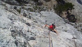 Diese Route war eine der ersten Sportklettereien im Grossofenbereich. Sie verläuft über schöne Platten, die zum Teil mit Tropflöchern übersaht sind. In drei knackigen Seillängen kommt man dem Ausstieg immer näher. Die letzte Seillänge kann durch die Variante Schrumpfkopf noch etwas verschärft werden. Insgesamt eine schöne Route, in der man aber den angegebenen Schwierigkeitsgrad beherrschen sollte. Vom Gesamteindruck ernster als die bei uns vorgestellten Routen Winterkönigin und Himmelsleiter.