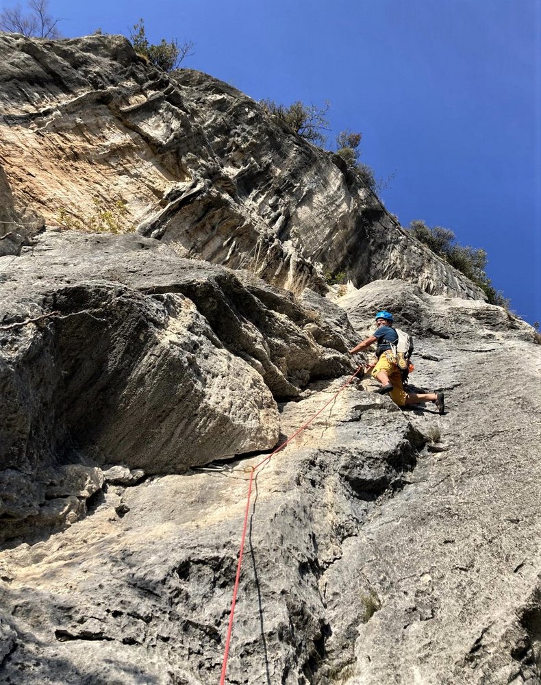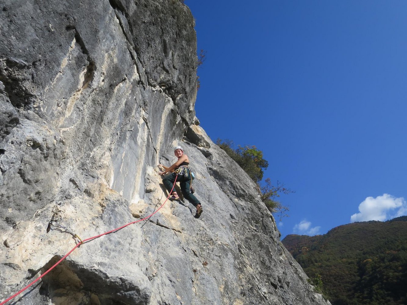 Schöne Route über Platten, Rampen und athletische Verschneidungen. Die Route hat zwei Teile, wobei der untere nicht so gut gesichert ist und die Mitnahme von Friends und Keilen hier stresssenkend wirkt. Der zweite Teil besticht durch seine großartige 2. Seillänge, eine fotogene Sinterquerung in perfektem Fels. Insgesamt lohnend und zu empfehlen!