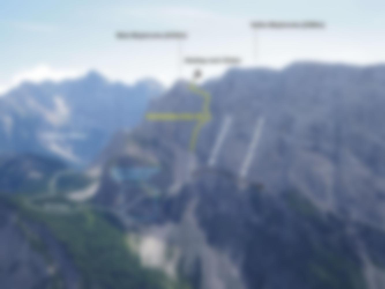 Vom Ausstieg über Steigspuren nach Süden, so gelangt man auf den Normalweg, der von der Kleinen Mojstrovka zum Vrsic-Pass zurückführt. Dieser ist teils Seilversichert, aber problemlos zu machen.