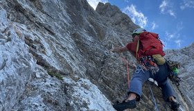 Kletterausrüstung, Satz Friends bis Größe 2; Satz Keile, Schlingenmaterial, Hammer zum Nachschlagen, event. Haken