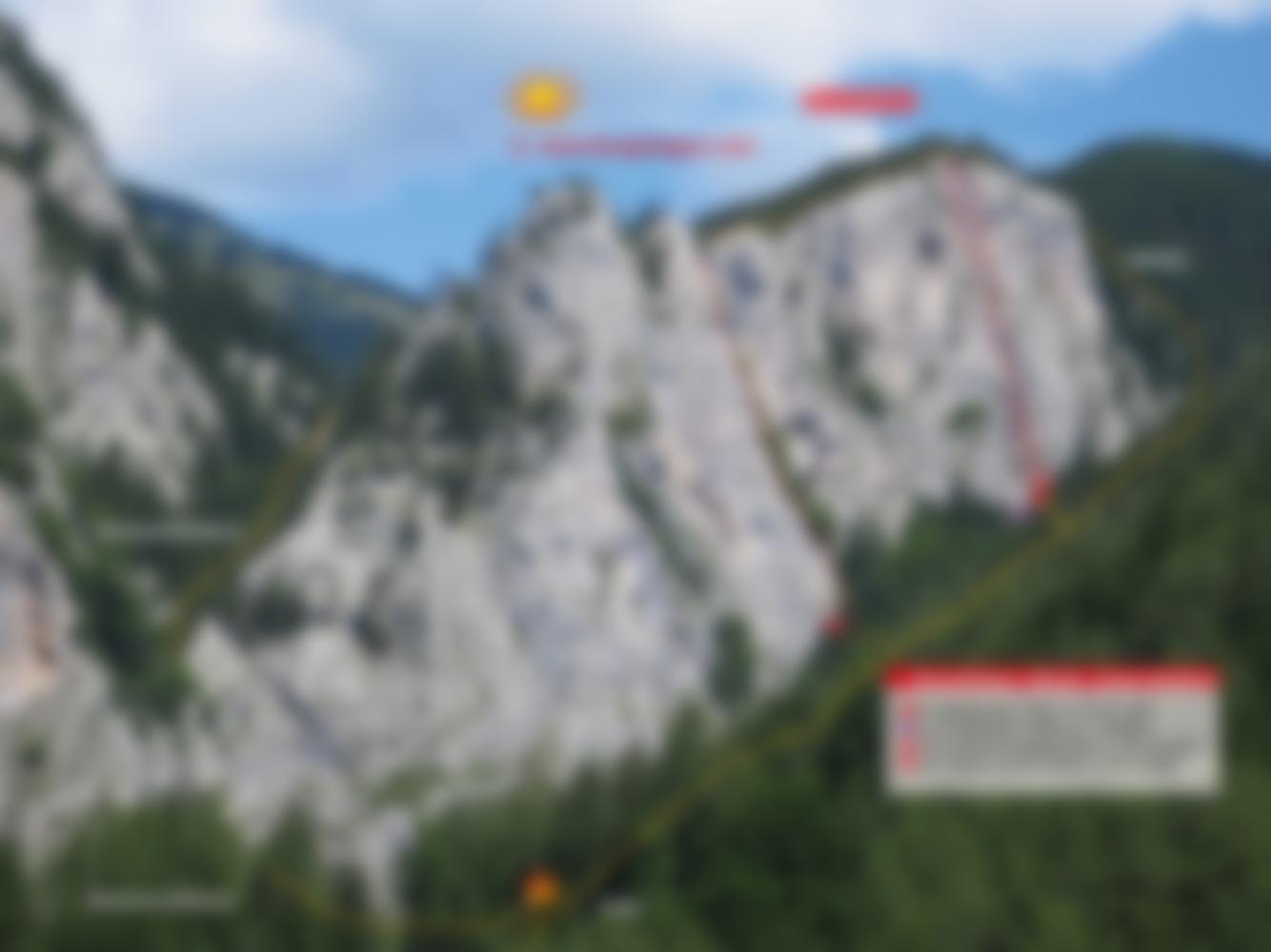 Schöne, südseitige und plattige Wandkletterei, die in 6 Seillängen auf den leicht geneigten Plattenfluchten neben der Abseilpiste emporzieht. Die Kletterei erfolgt oft an festen Henkeln und Sanduhren in den verschiedensten Größen und gehört zu den beliebtesten Touren im Grazer Bergland.