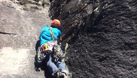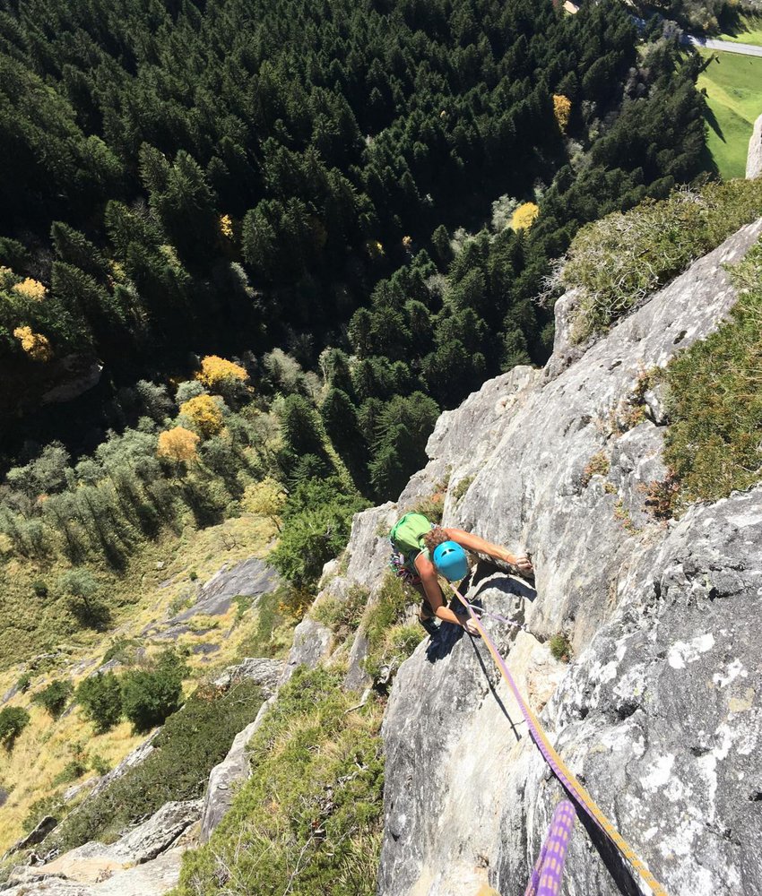 60 m Doppelseil, 10 Expressschlingen und Helm. BD Camalots Gr.: 0.4, 0.5, 0.75, 1, 2, 3 und 4