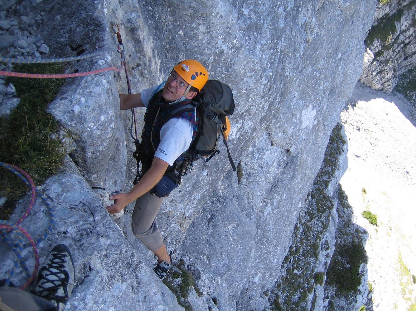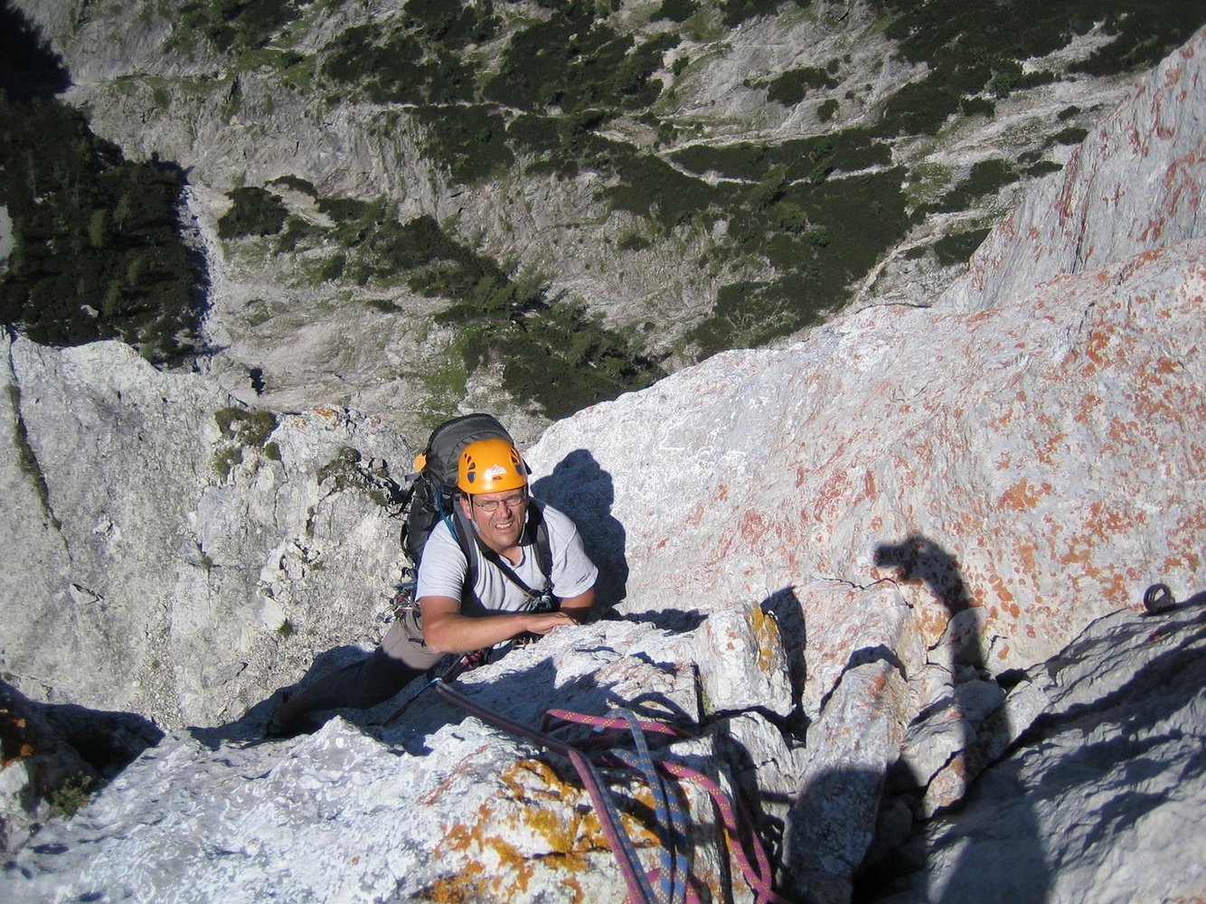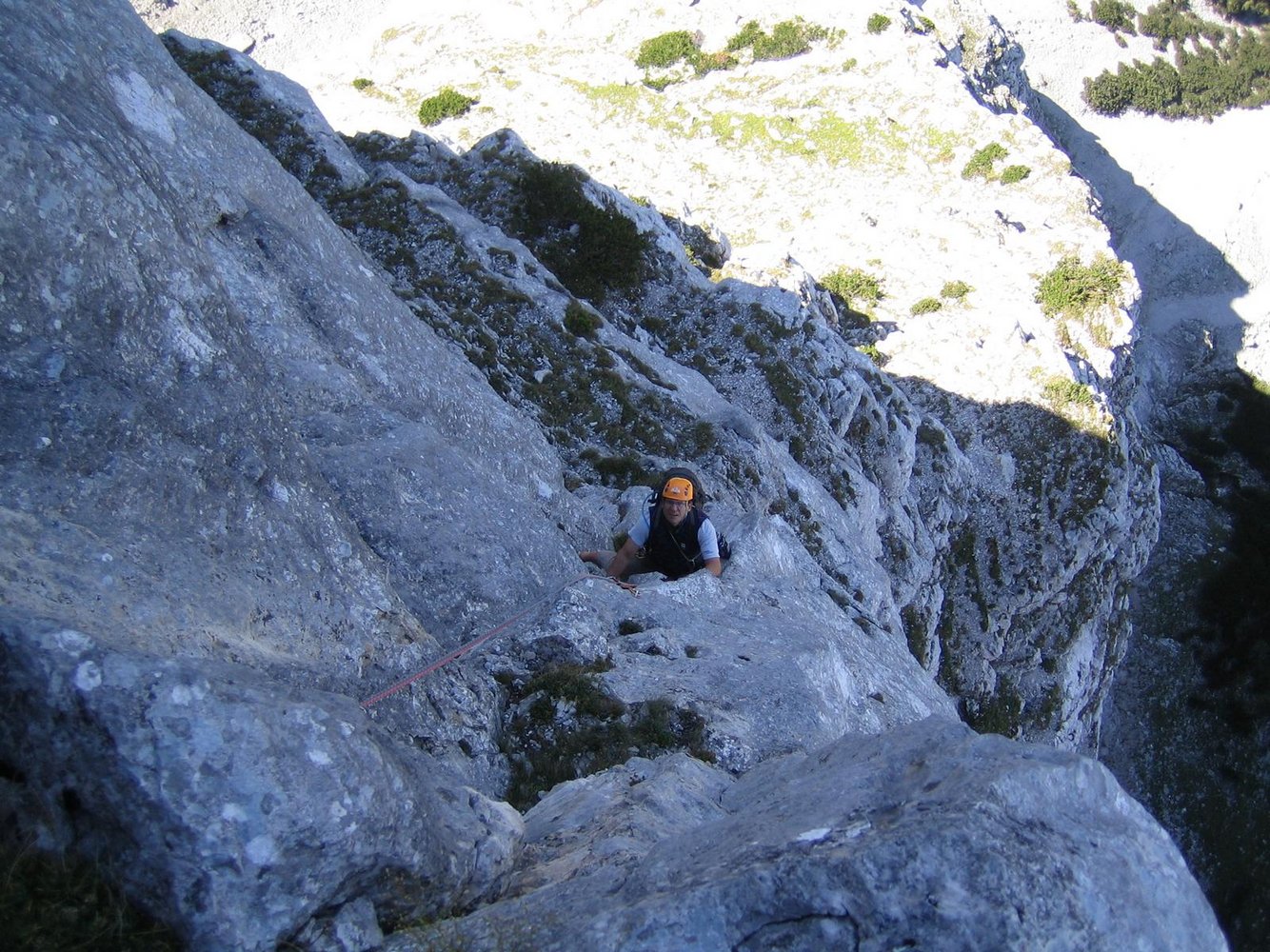Fluchtmöglichkeit auf dem oberen Band nach der 8. Seillänge.
