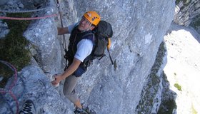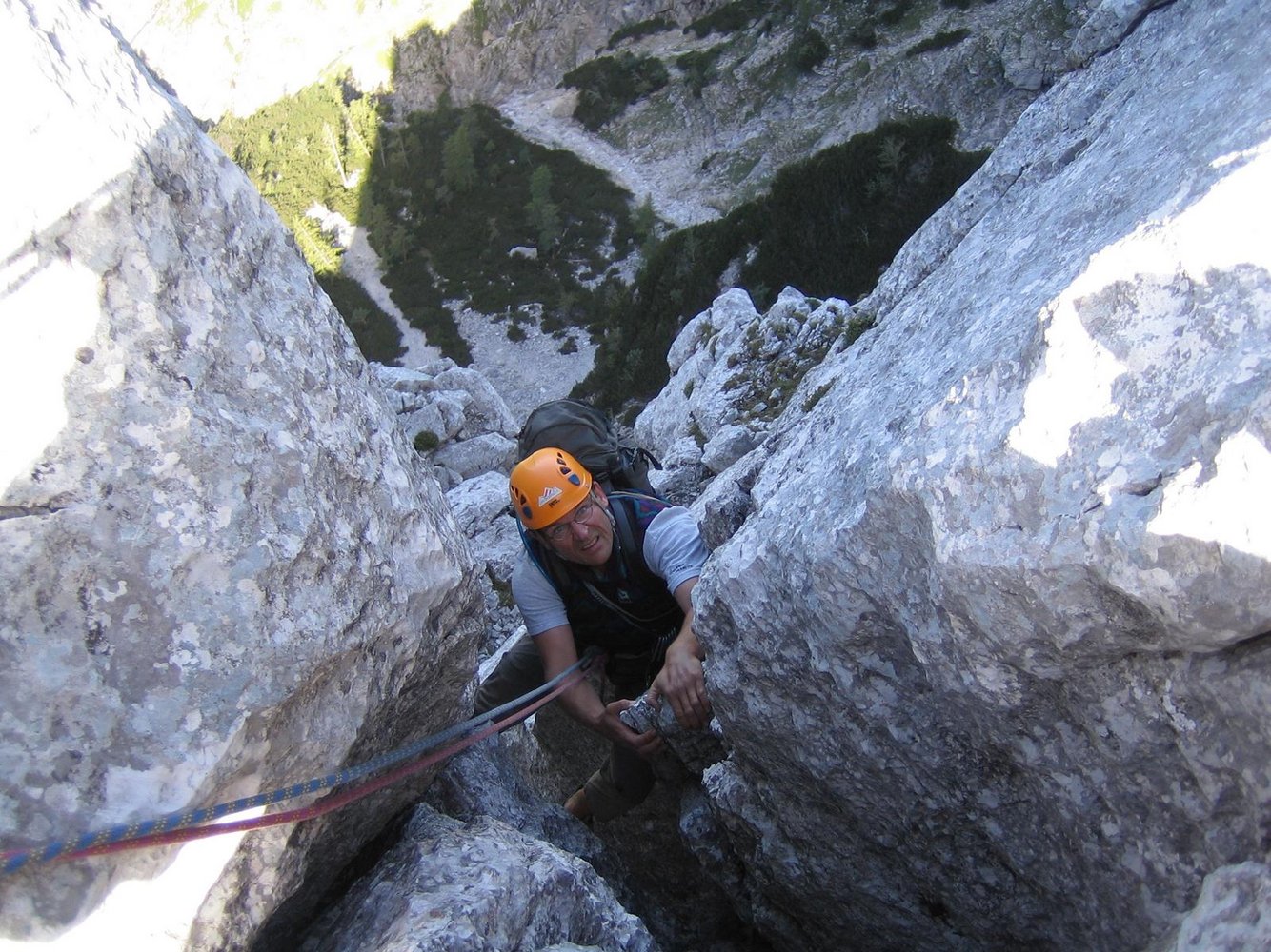 Super Klassiker. Sehr schöne und steile, abwechslungsreiche Kletterei. Von Riss- und Verschneidungskletterei über Platten, Wandstellen und kleinere Überhänge bis hin zu einem ausgesetzten Quergang und einem Stemmkamin wird alles geboten!