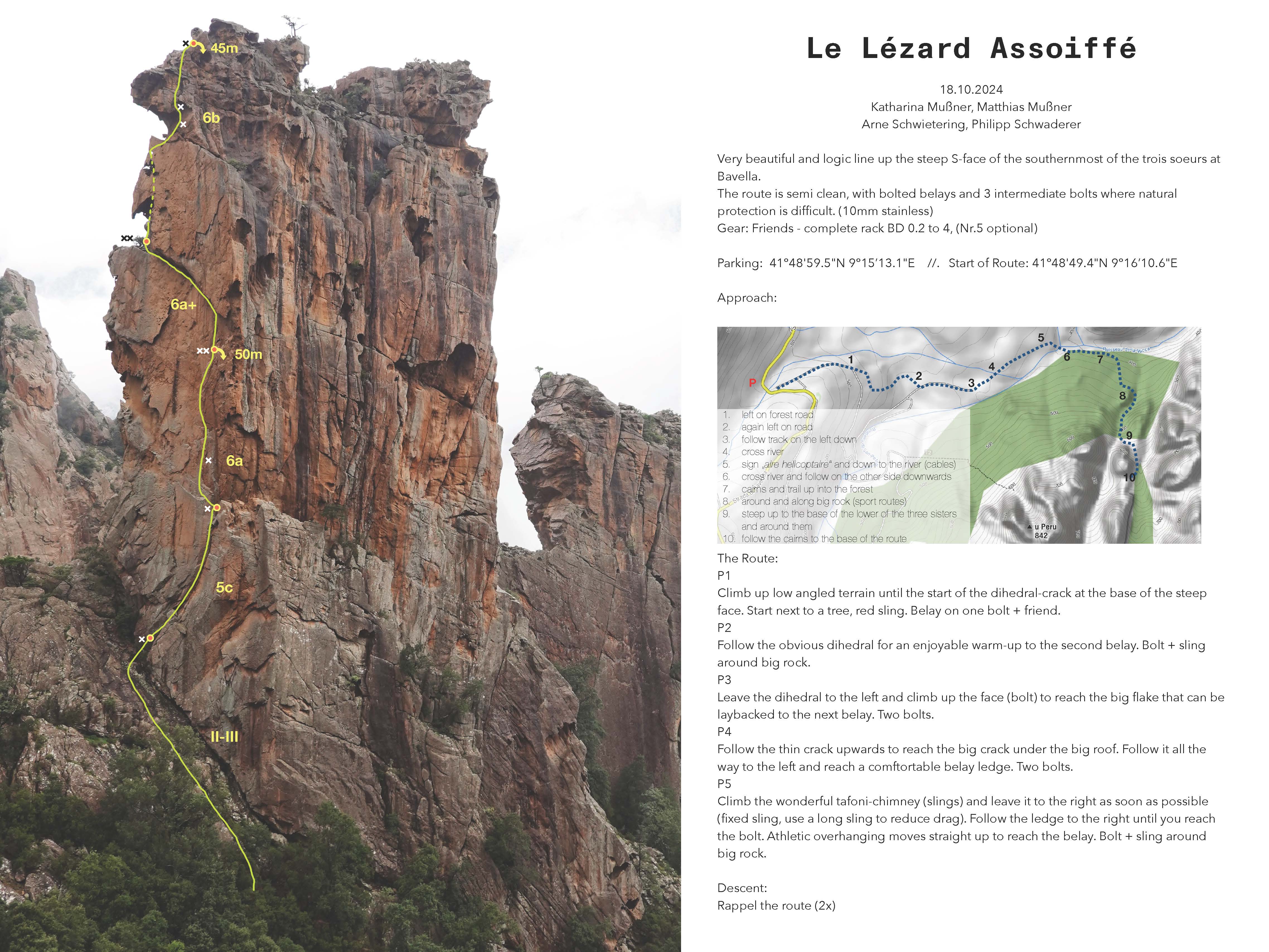 Empfohlenes Material: Kompletter Satz Friends 0.2 bis 4, 5 optional. Halbseile zum abseilen.