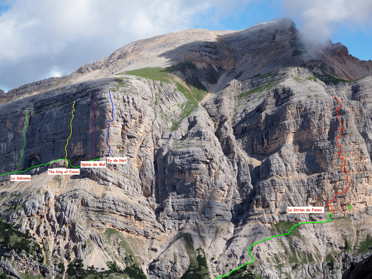 Imposanter, schwerer und recht anspruchsvoller Anstieg an der Südwand des östlichen Col Bechei Pfeilers in der Fanes. Der Anstieg wurde von Simon Kehrer und Hubert Eisendle im Jahr 2023 oberhalb des Fanes Tales eingerichtet,