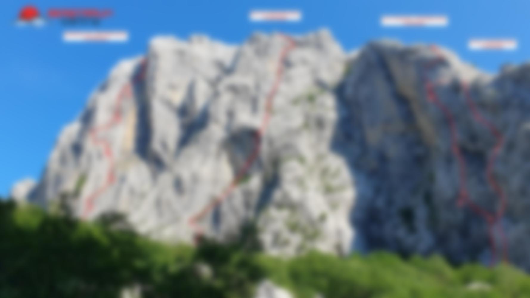 Eine ausgesprochen schöne Linie an der NW- Seite des Stup. Einstieg unmittelbar links neben der Saleski und der Trik. In Kombination mit den benachbarten Linien oder der brid ca veliki cekic hinauf auf den Kuk ist das perfekt für den ersten oder letzten Klettertag.
