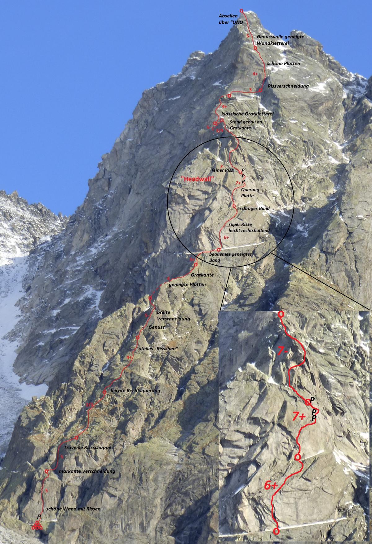 Eine Stelle ca.7+, größtenteils 5. Grad
