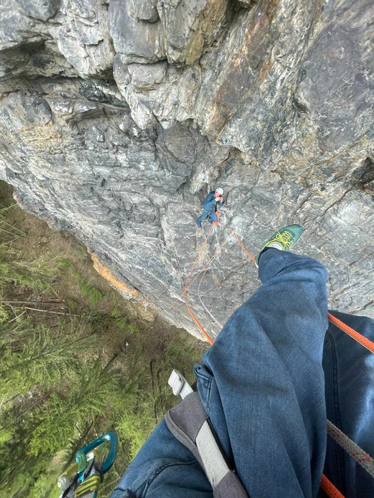 Unbedingt zwei trockene Tage abwarten. Bei Nässe sind die oberen flachen Seillängen wegen des Mooses extrem unangenehm.
