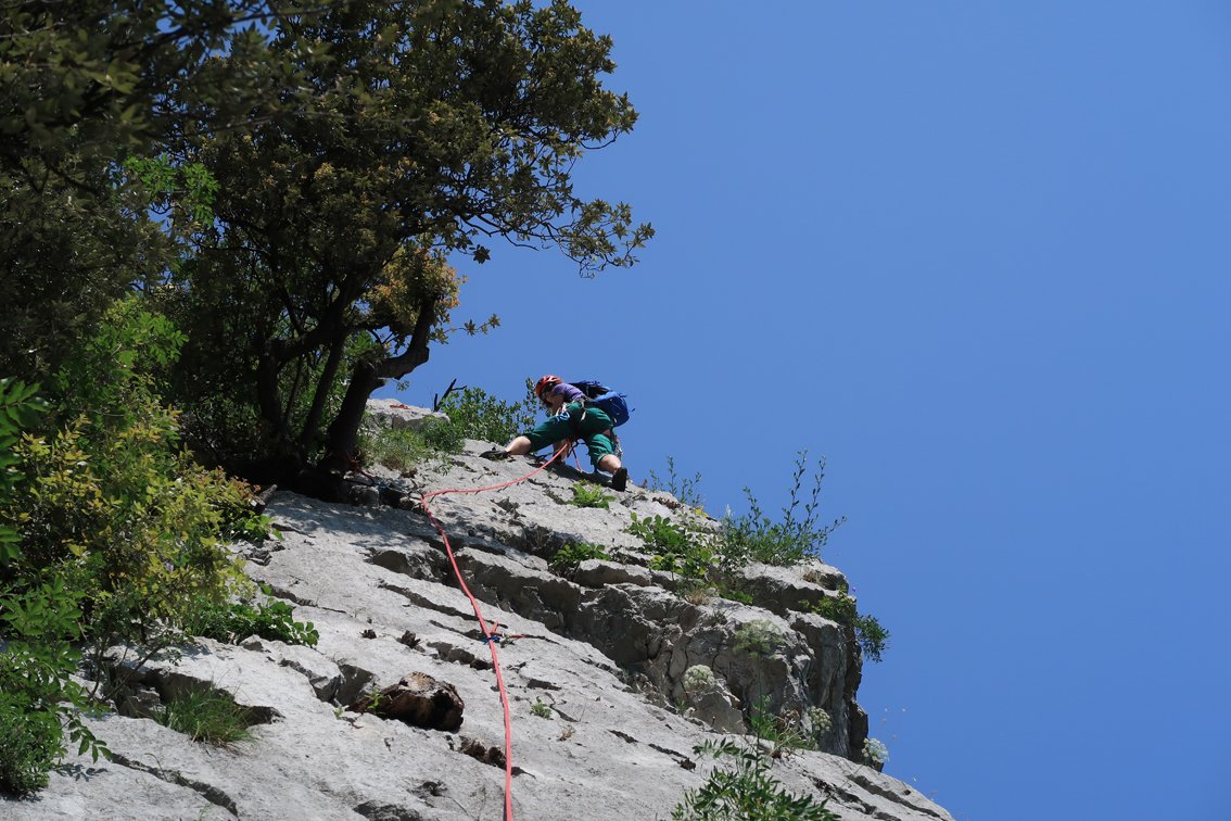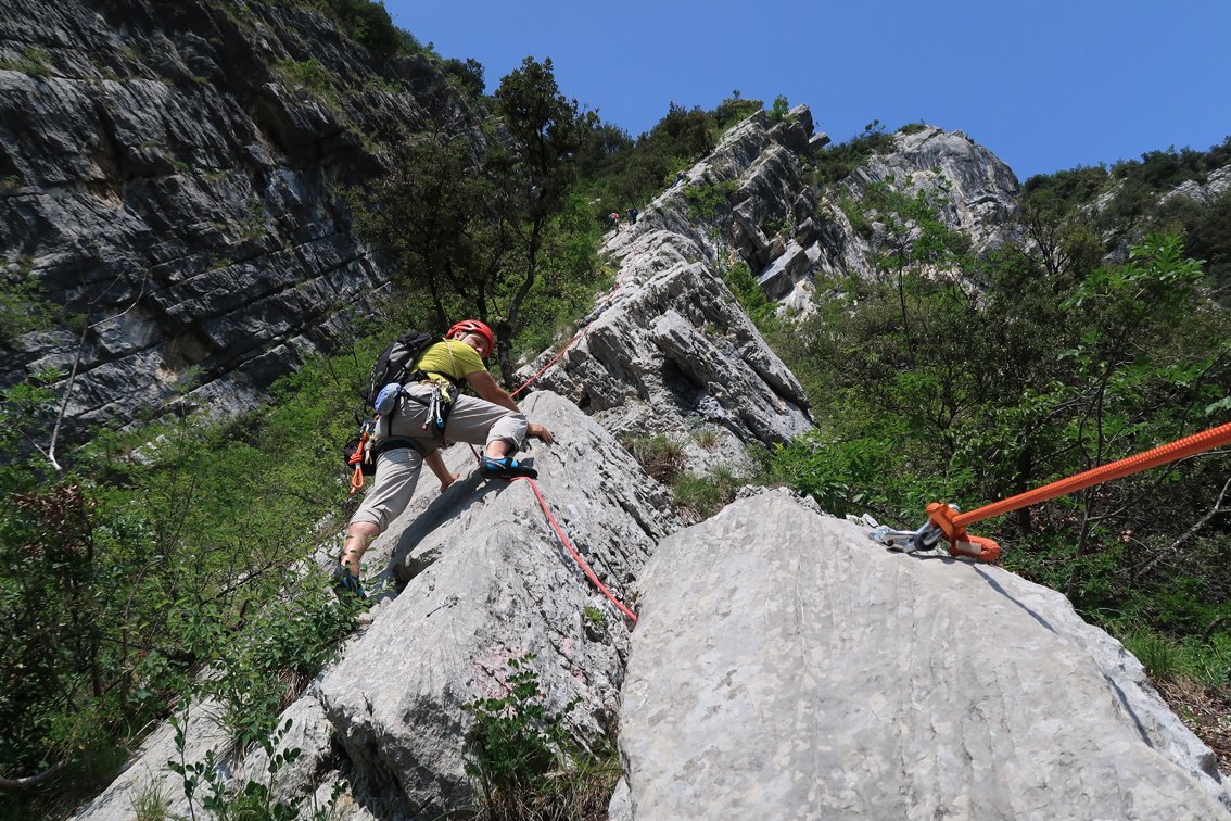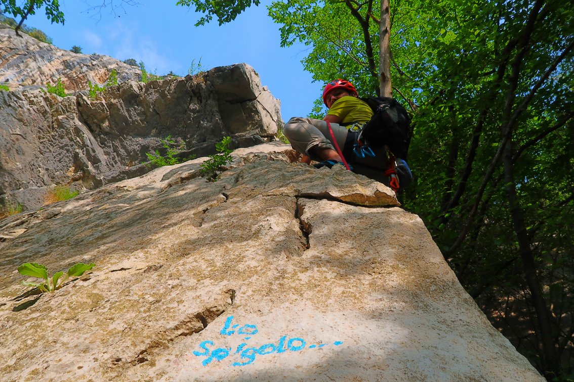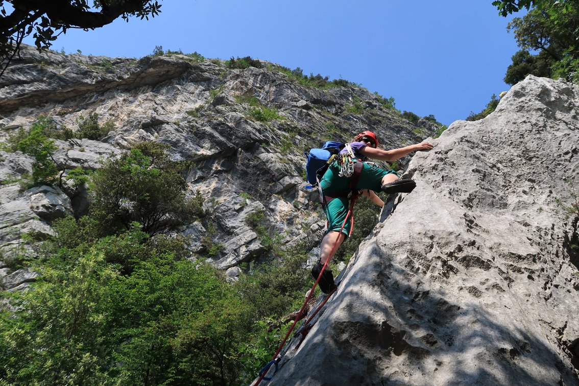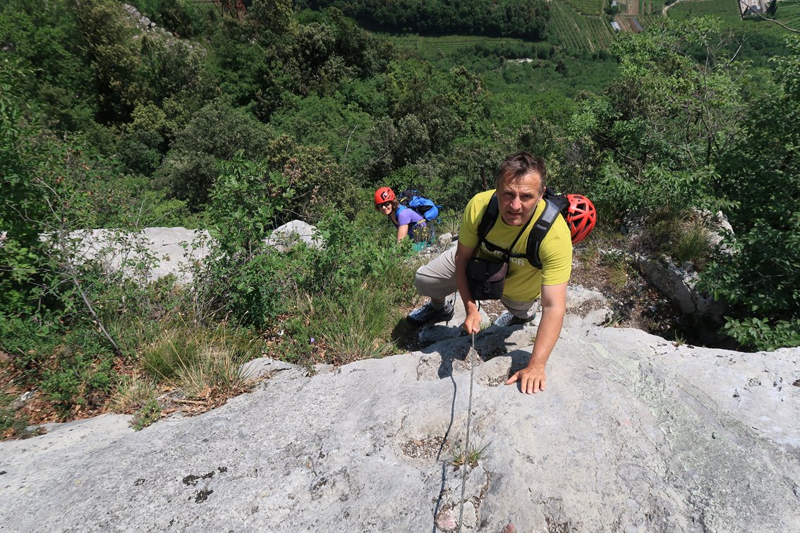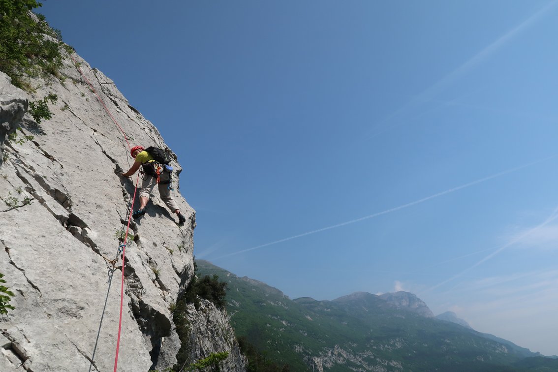Eine der besten leichten Klettertouren im Sarcatal! Schon beeindruckend, was die beiden Erstbegeher an den Felsen geleistet haben - aus einer "Gemüsekante" mit viel Buschwerk wurde eine wunderschöne Kletterlinie. Der Zu- und Abstieg ist relativ kurz, die Kantenroute ist wirklich schön zu klettern, griffig und sehr leicht - hoher Andrang ist also vorprogrammiert.
