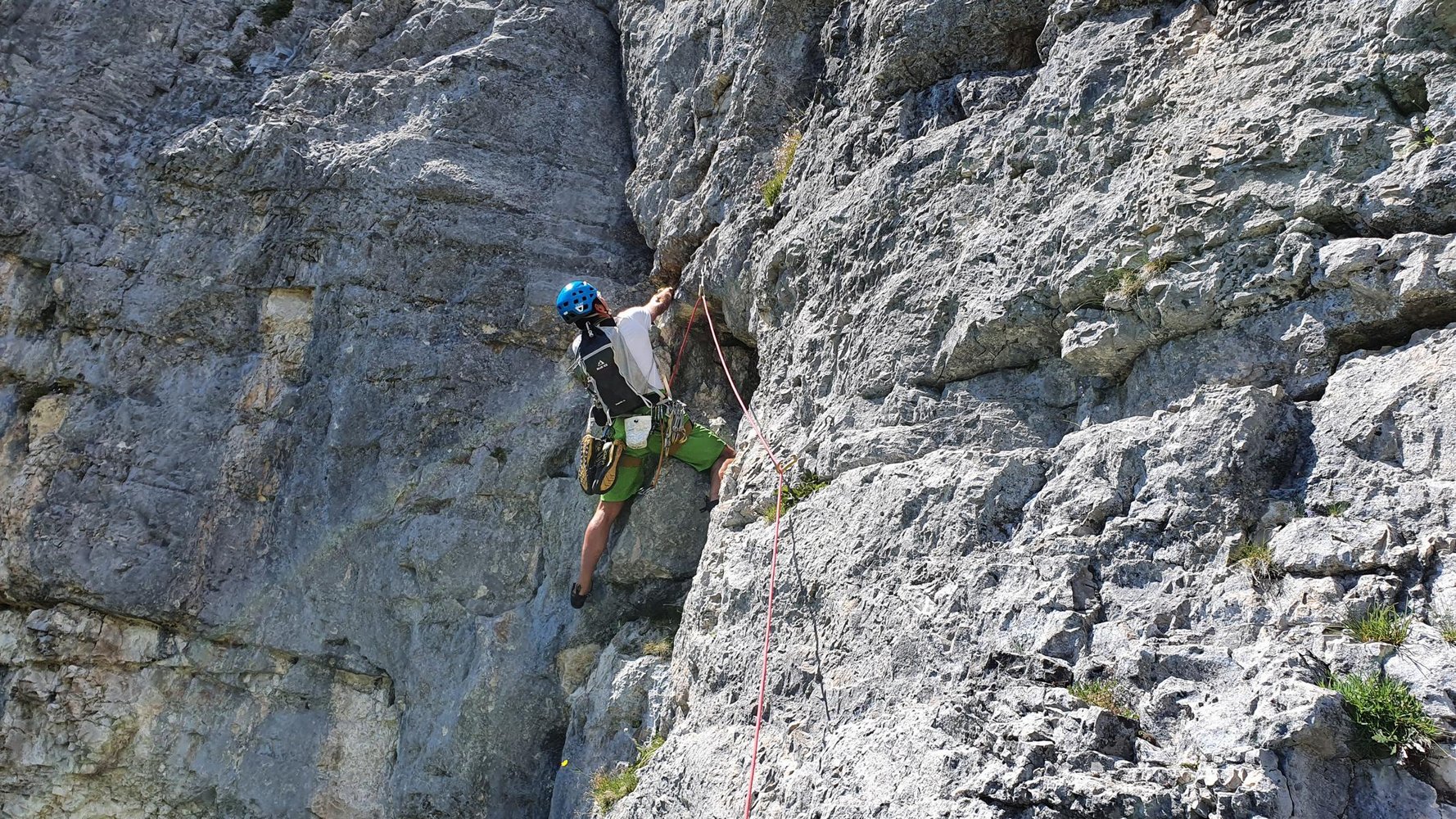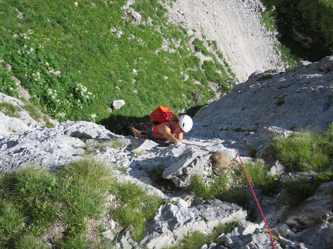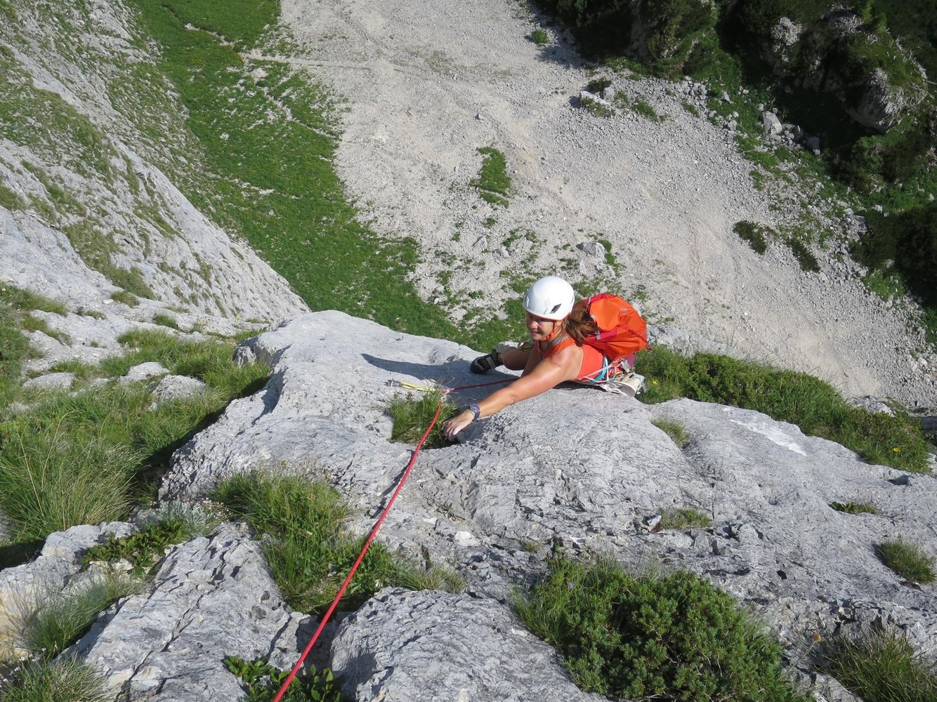 Schöne Bohrhakenroute in der Loser Südwand. Die Route endet eigentlich beim großen Band im letzten Wanddrittel, man kann aber noch gut eine 6er Länge anhängen, bevor man den letzten beiden Ausstiegslängen der Route „Südwand“ folgt. Der Fels ist bis zum Band sehr gut! Die Tour ist sehr gut mit Bohrhaken abgesichert, nur im leichten 2-3er Gelände steckt aber wenige.