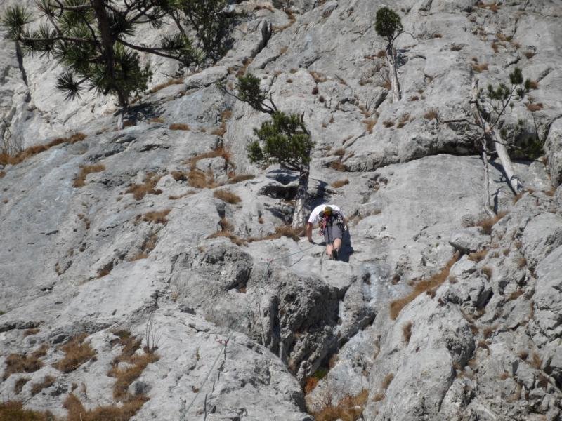 Über die Tour abseilen und rechts über schroffen hinunter.