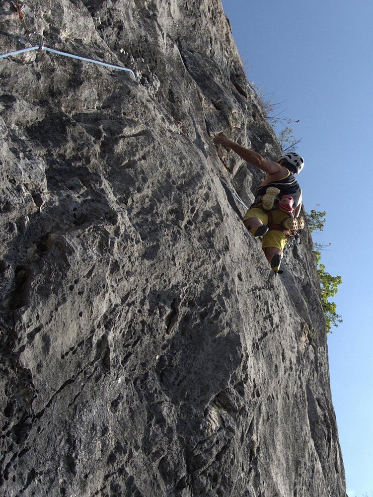 Sehr gut mit Bohrhaken und Sanduhren gesichert.