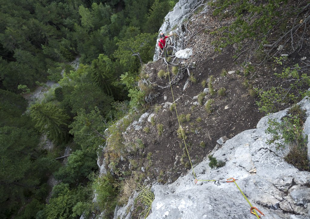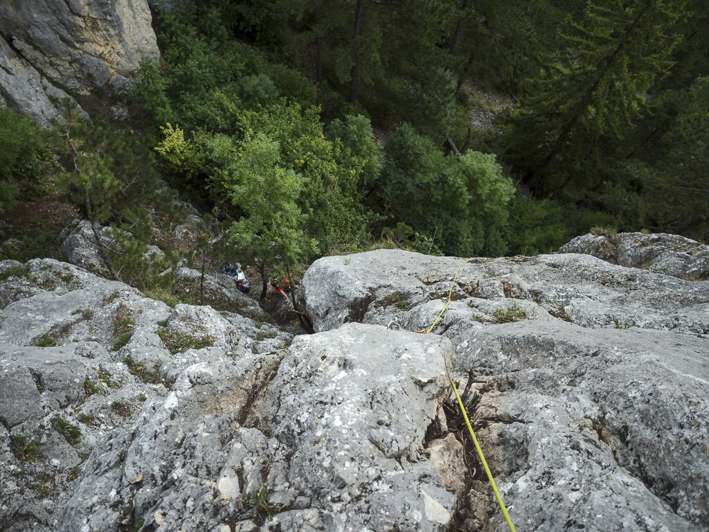 Über die Tour Eleganz im Meerschweinchentanz 2x25 m abseilen und über Zustieg in 10 Min. zum Parkplatz.