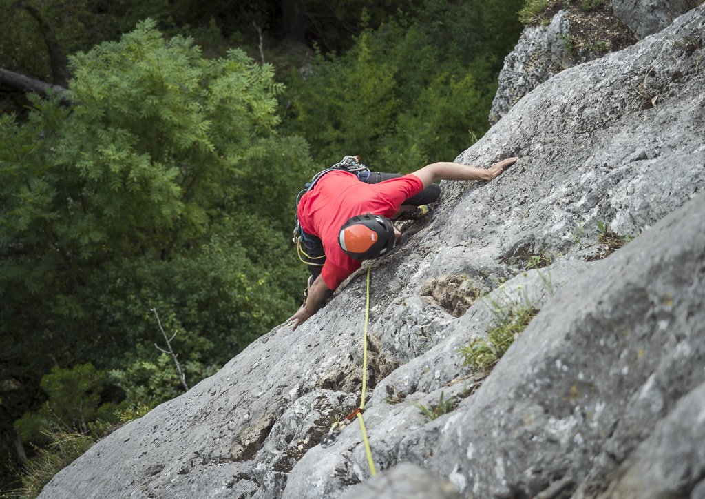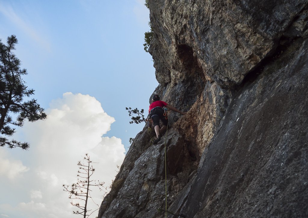 Kurze, aber überraschend abwechslungsreiche Tour mit kleinem Überhang, Plattenstelle und ausgesetzter Verschneidung. Damit ist auf 3 Seillängen für jeden etwas dabei. Großzügig abgesichert – lässt sich hervorragend mit der Tour " > Eleganz im Meerschweinchentanz" (rechts daneben) verbinden. Die Tour ist unmittelbar links neben "Die Eleganz im Meerschweinchentanz".