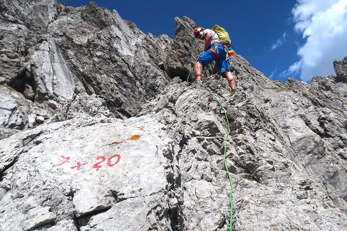 Es sind über 900 (!) Klettermeter die man bewältigen muss - diesen Umstand sollte man bei der Tourenplanung (sicheres Wetter, ausreichend Kondition, etwas alpine Erfahrung für den oberen Teil etc...) immer im Hinterkopf behalten.