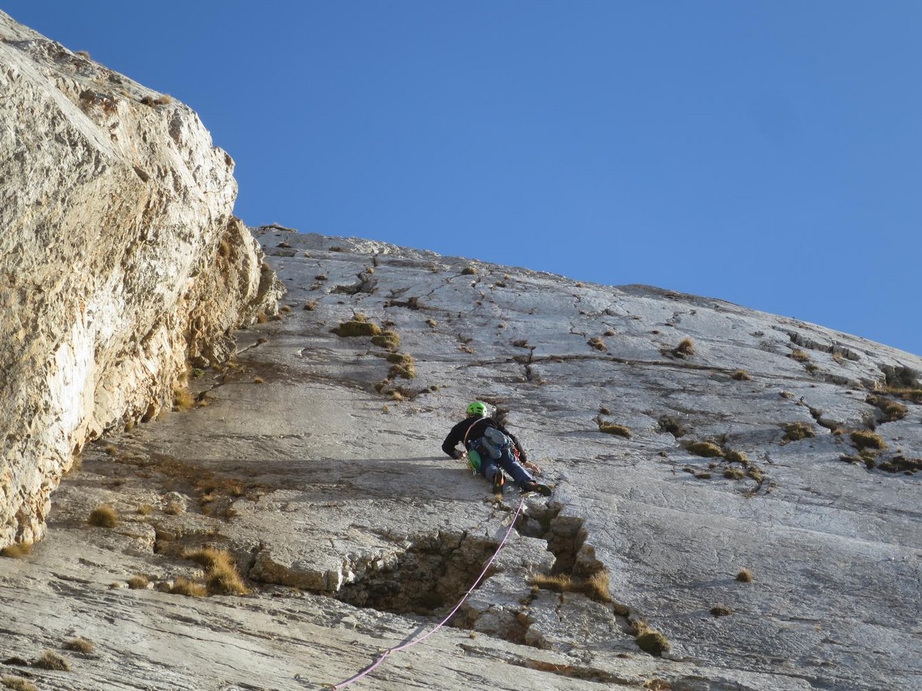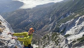 Diese Route in der Preinerwand ist sicher eine der besten Genuß-Touren im Raxbereich. Sie ist durchaus mit dem King Kong Koarl zu vergleichen, zumindest was die Absicherung betrifft. Die Route verläuft im unteren Teil durch nicht sehr festes Gestein (Helm!!!), dafür wird man aber oben durch wunderschöne Platten, die man nur durch "Handauflegen" überwindet, entschädigt. Danach lohnt sich ein Besuch der Seehütte, der nette Wirt winkt eh immer mit dem Bier hinüber...
