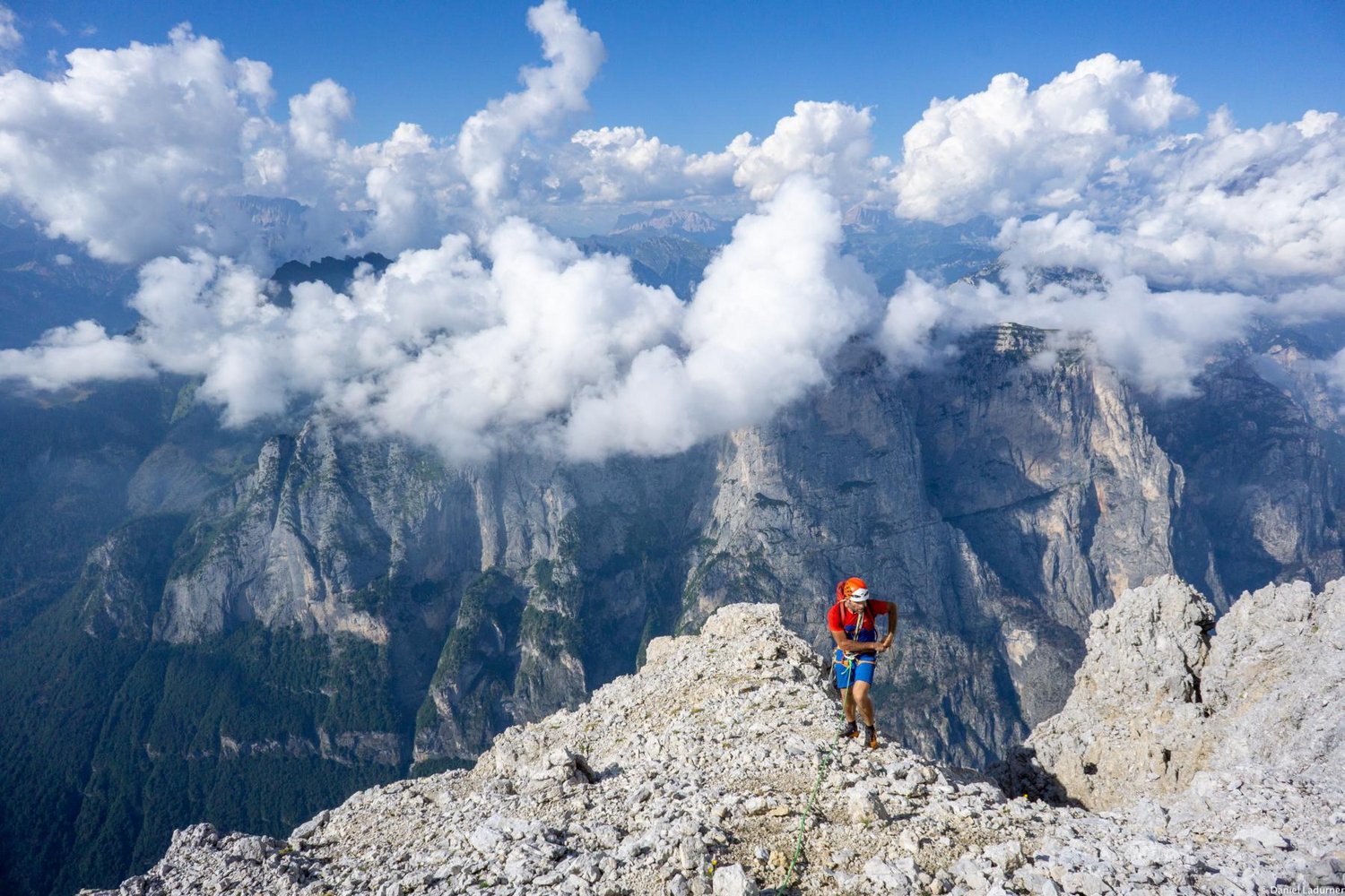 Eine gute Zweierseilschaft sollte die Route mit viel Seilfreiklettern in einem Tag bis zum Bivacco Biasin schaffen. (Kletterzeit 10 - 15 Std.)