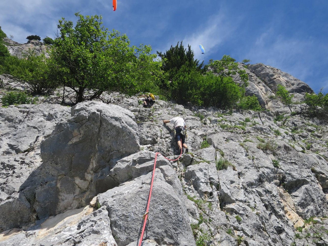 Revitalisierte Uralt-Kletterroute, die durchaus nette Seillängen (1-3, 6 und 8) aufzuweisen hat. Im Mittelteil aber viel Schrofengelände und nach dem Einstieg und in der 7ten Seillänge auch erdig.