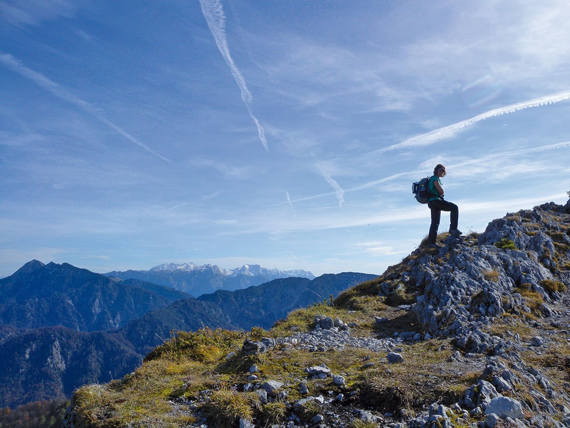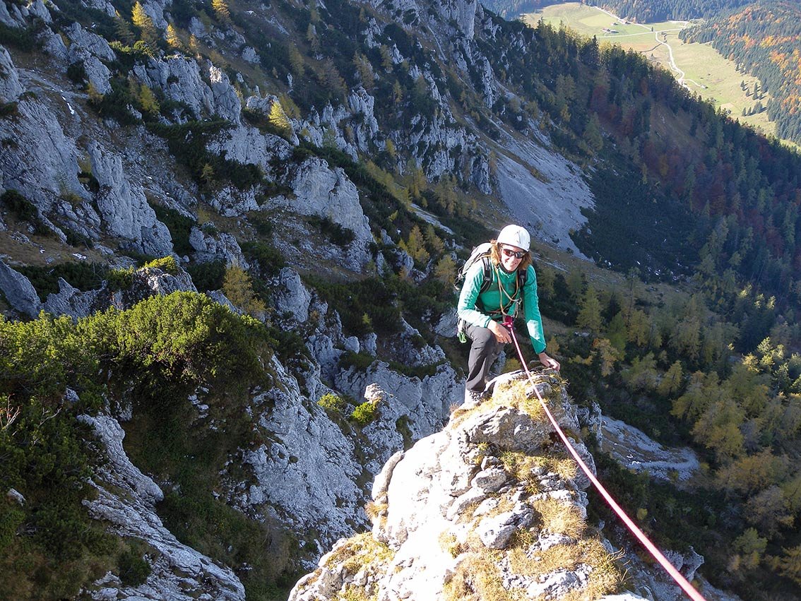 Vom Gipfelkreuz des Klettergipfels nach rechts, immer im Bereich des Grates zum Hauptgipfel (Kletterstellen bis 1+) und weiter zum Wintergipfel (drittes Kreuz). Von diesem auf dem Wanderweg in eine Scharte. Dort entweder rechts auf dem Jägersteig zurück zur Bergrettungshütte und weiter wie auf dem Aufstiegsweg ins Tal oder aber links durch das Ostertal hinunter zur Vereinigung mit dem Zustiegsweg