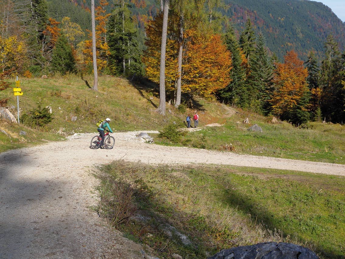 : Der Zustieg zur Branderalm lässt sich auch bequem mit dem Mountainbike machen. Der durchaus für Einsteiger geeignete Anstieg ist wegen der schattigen Lage eher etwas für wärmere Tage.