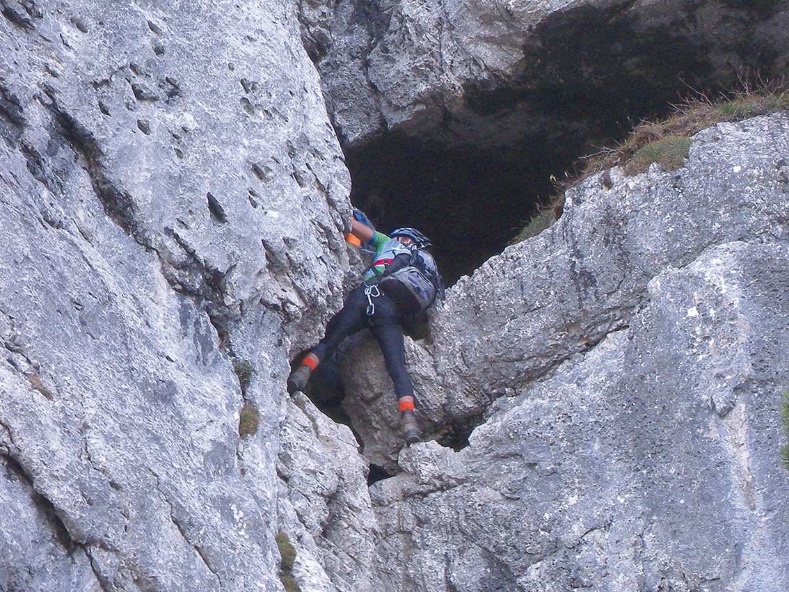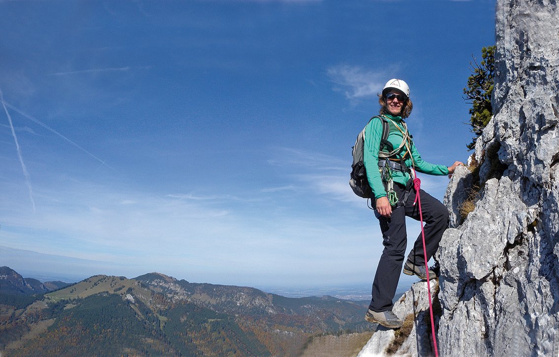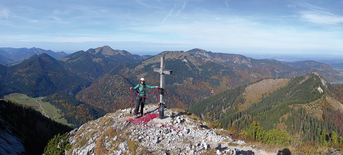 Besonderheiten: Die Hörndlwand, mit den drei Gipfelkreuzen, ist ein beliebter Wanderberg in den zentralen Chiemgauer Alpen. An der steilen Nordseite, direkt oberhalb der kleinen Bergrettungshütte, gibt es einen schönen Wanddurchstieg, der sich wegen der geringen Schwierigkeit und der recht klaren Linienführung vor allem für Einsteiger eignet. Die wirklich fordernden Kletterstellen sind auf ein paar Meter beschränkt und werden durch Bohrhakenabsicherung zusätzlich entschärft. Die reizvolle Tour in wirklich perfekter Voralpenlandschaft ist vor allem an Sommertagen zu empfehlen, da man die meiste Zeit in der schattigen Nordwand klettert. Beim luftigen Finale, direkt auf dem steilen Westgrat, trifft man dann auf die Sonne!