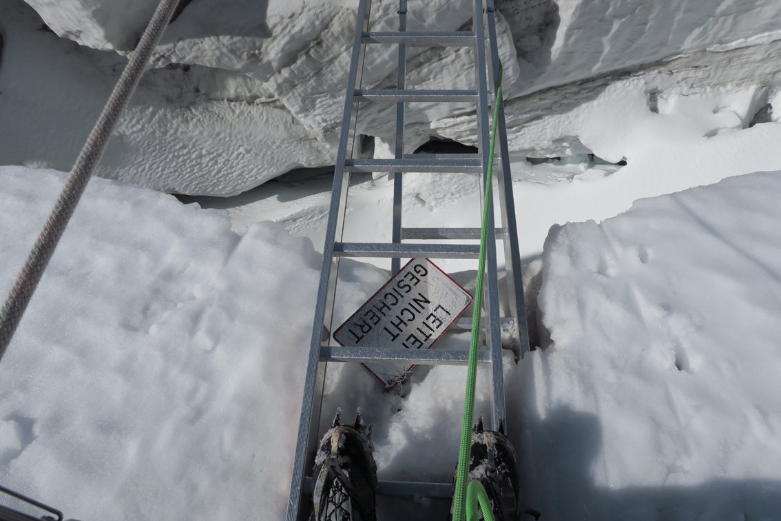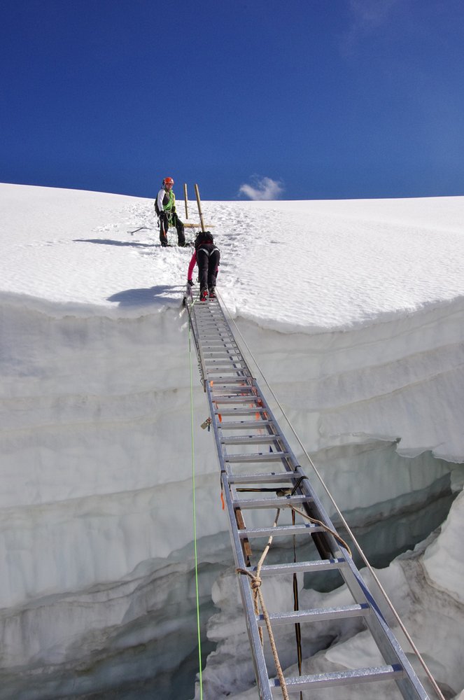 1 x 50 m Einfachseil, 4 Expressschlingen, sehr gut zur Absicherung eignen sich kleine und mittlere Keile bzw. Friends, einige Bandschlingen und Helm. Komplette Gletscherausrüstung für den Zu- und Abstieg.