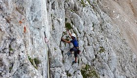 Sehr schöne und wirklich lohnende Kletterei an oft wasserzerfressenem Fels. Die Linie verläuft im unteren Teil über den “Unteren Quergang” und im oberen Teil links der eigentlichen Kante (über diese führt etwas missverständlich der Östliche Nordkantenpfeiler). Zu Recht der große Klassiker im Gebiet, insgesamt jedoch deutlich leichter und weniger anspruchsvoll als der Östliche Nordkantenpfeiler. Etwas alpiner Spürsinn bei der Routenfindung ist dennoch angebracht.