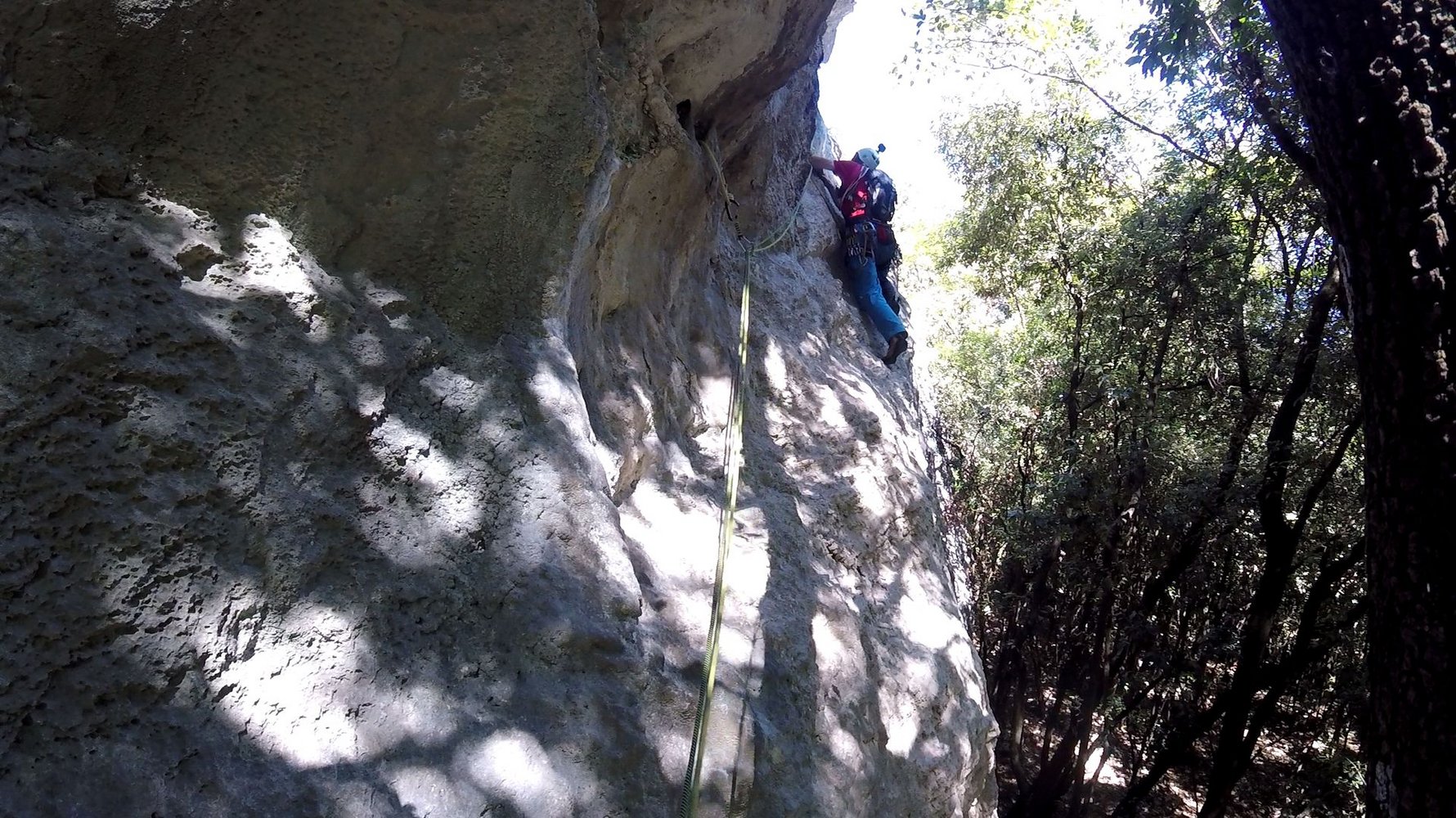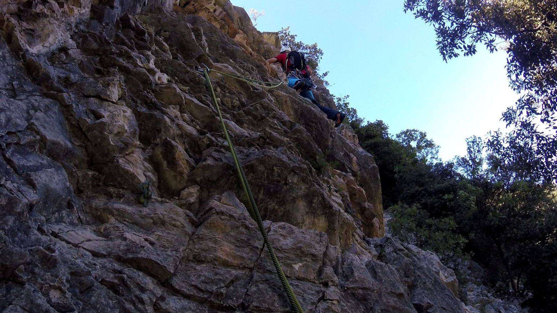 Die Tour ist mit vielen Sanduhren abgesichert, an den schwierigen Stellen stecken Bohrhaken.